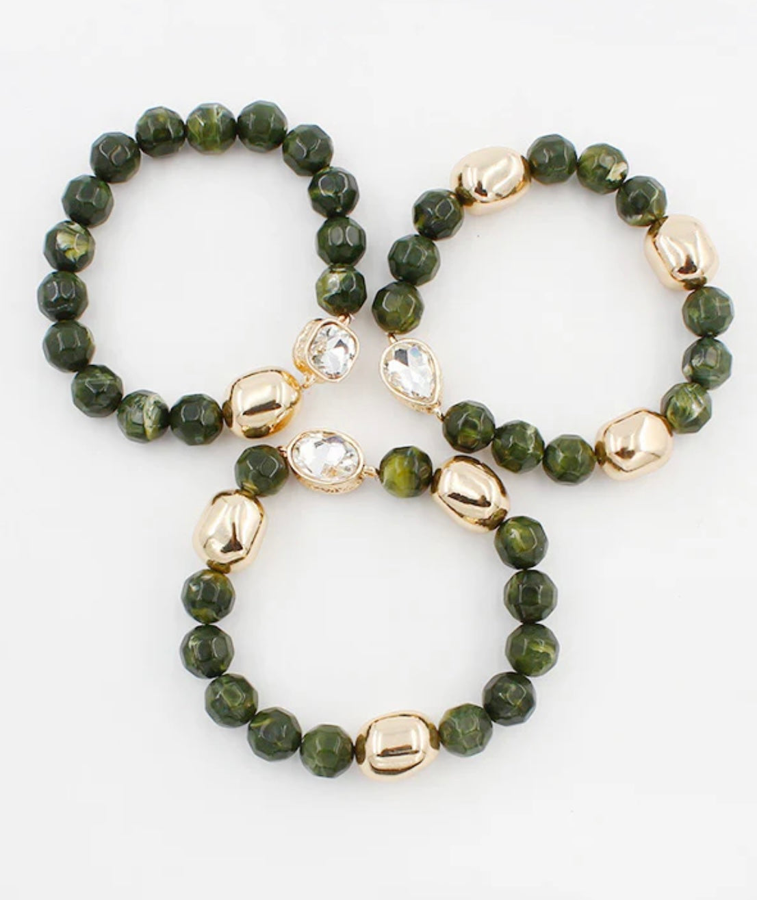 Stone & Gold Bracelet Sets with Rhinestone Details (3 color options)