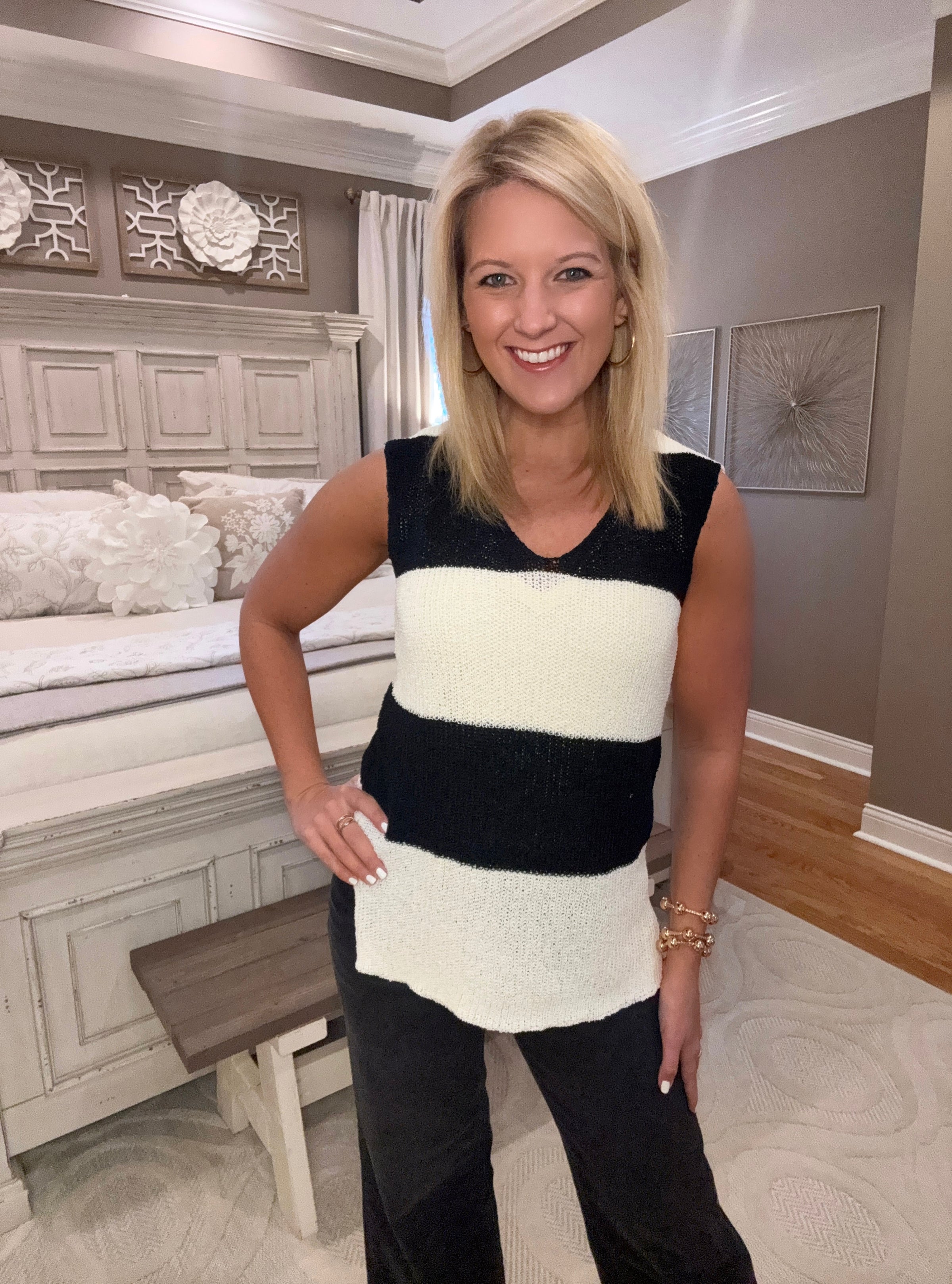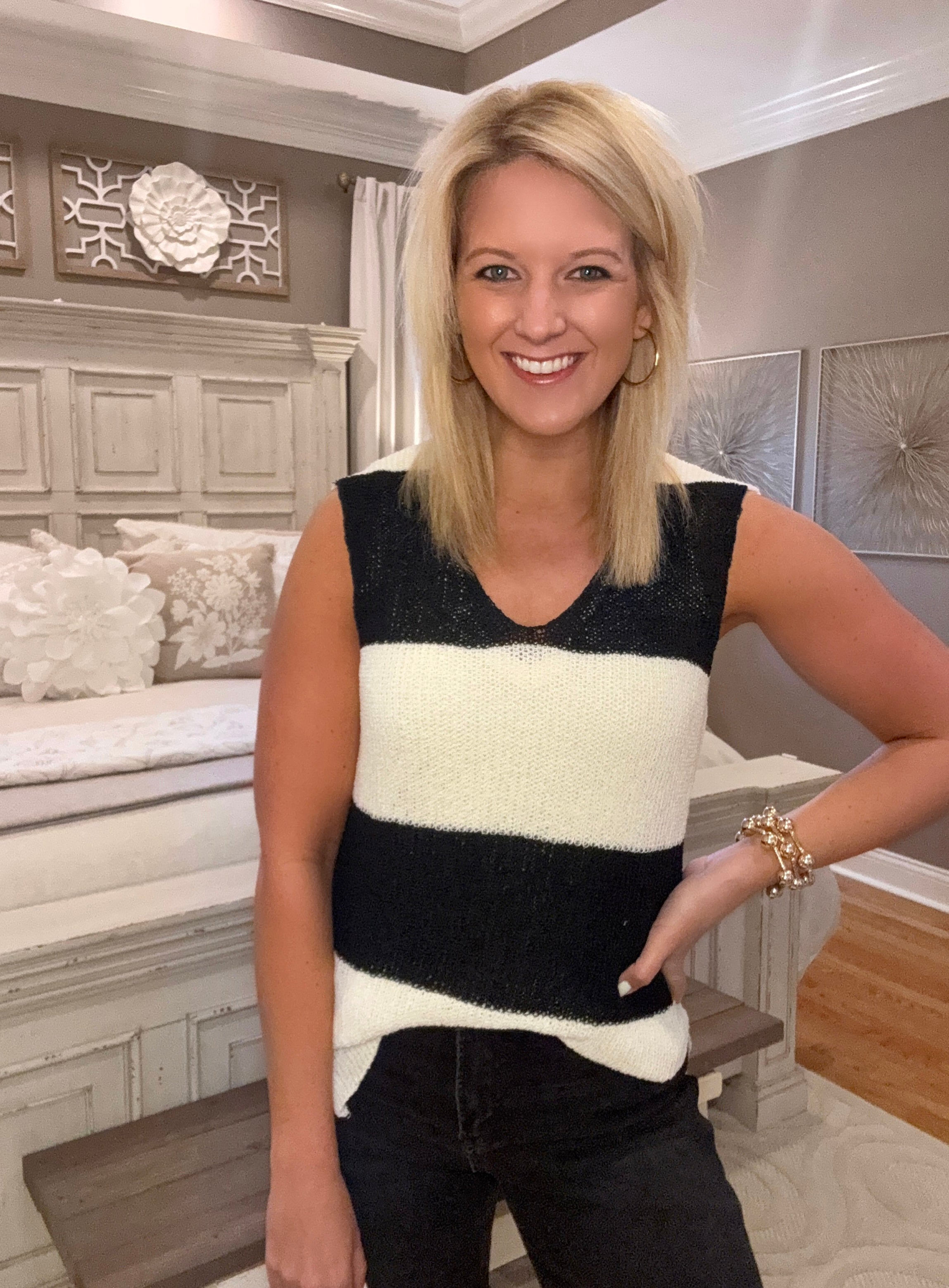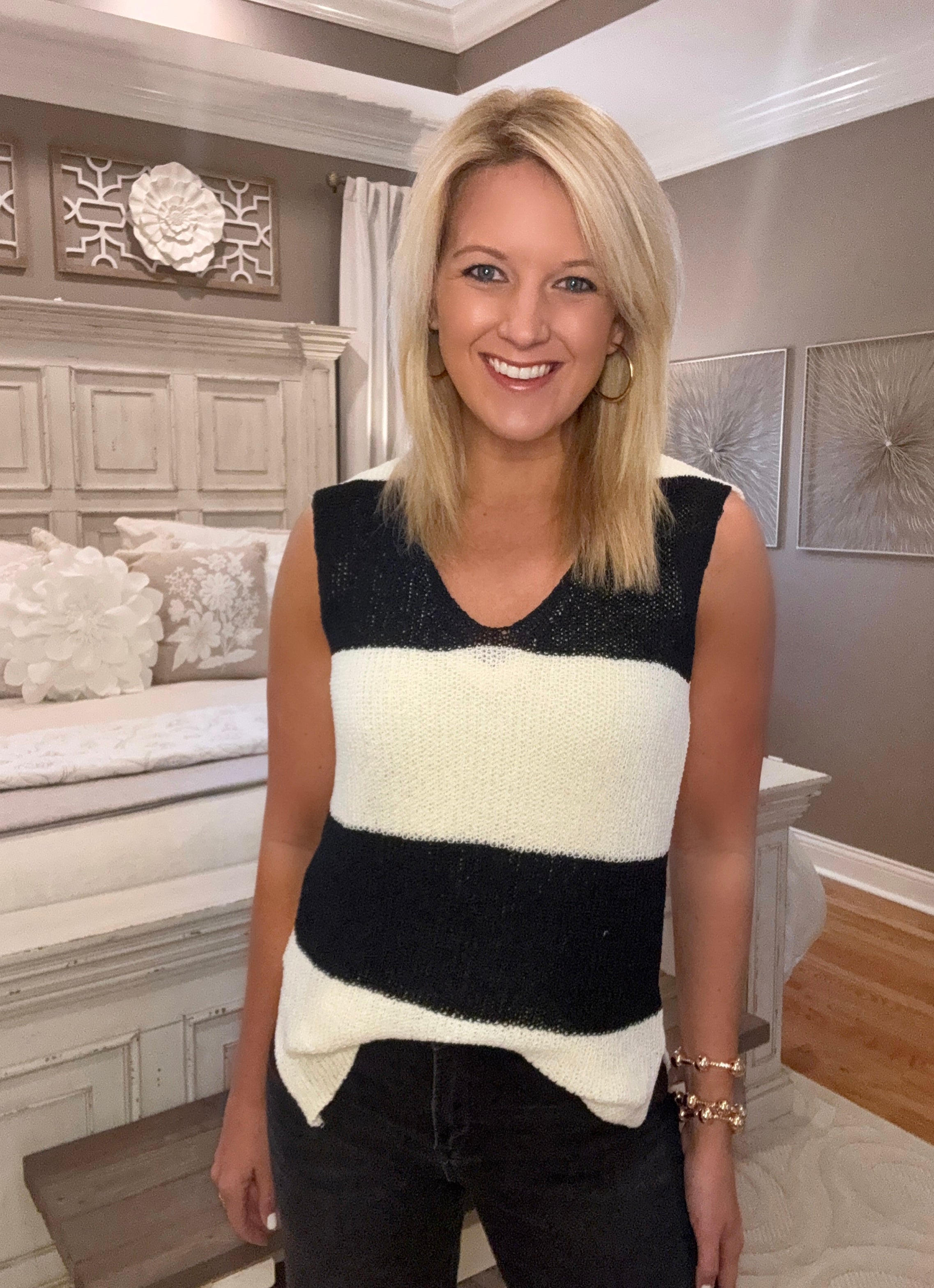 Black & Off White Stripe Sleeveless Sweater
