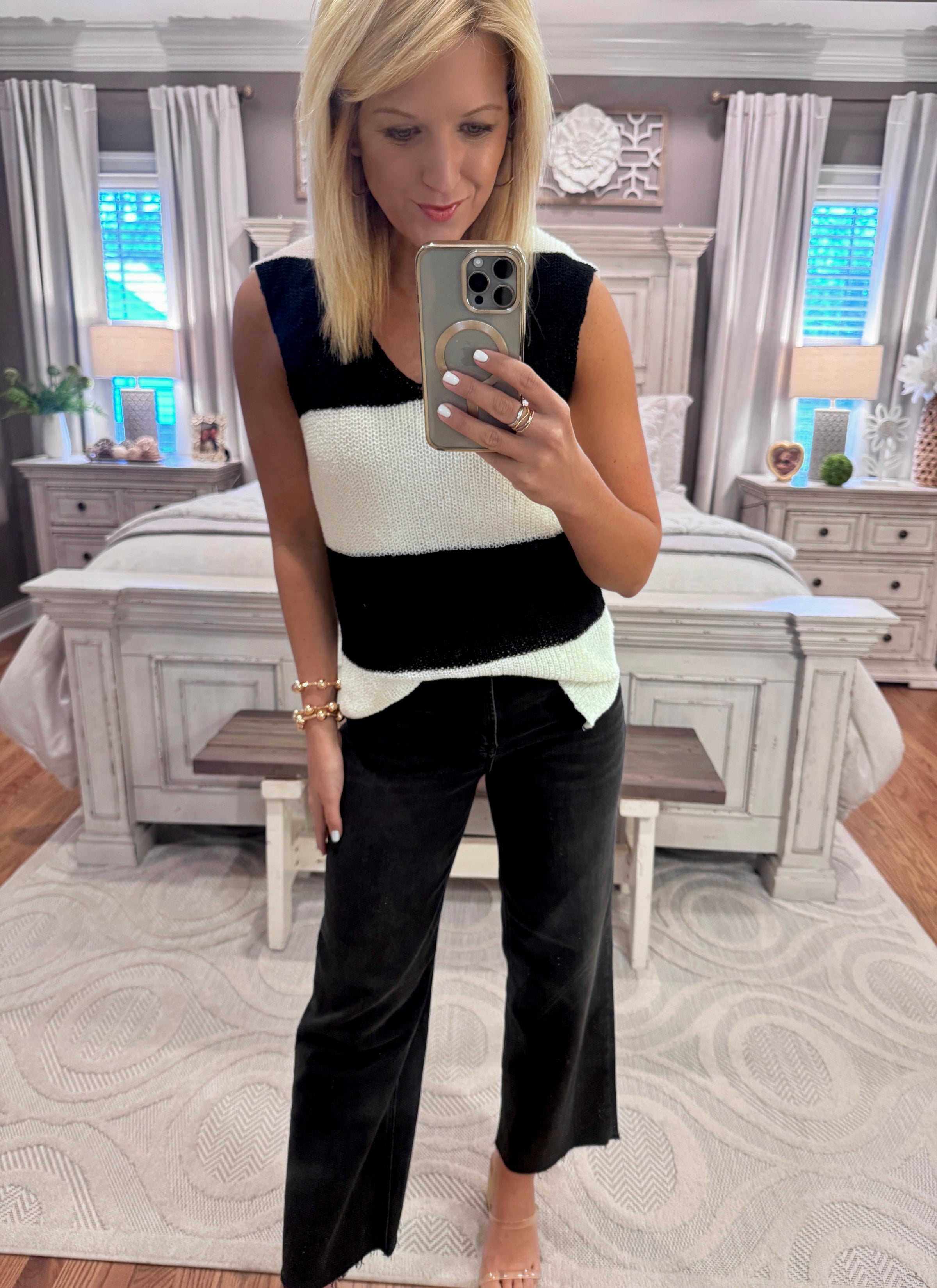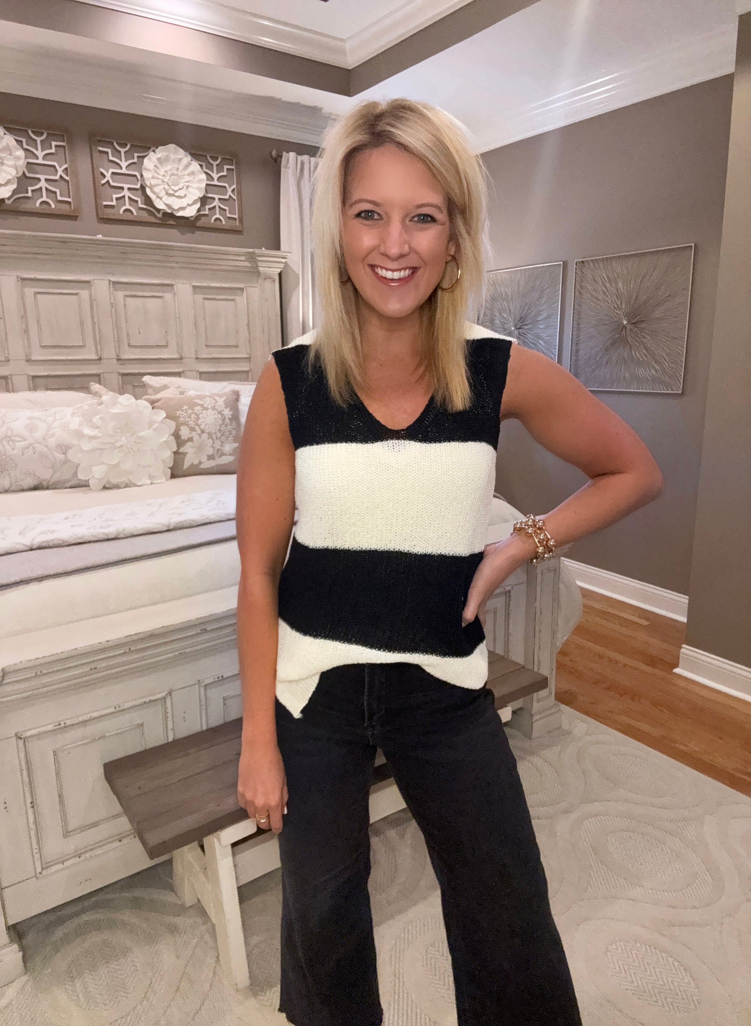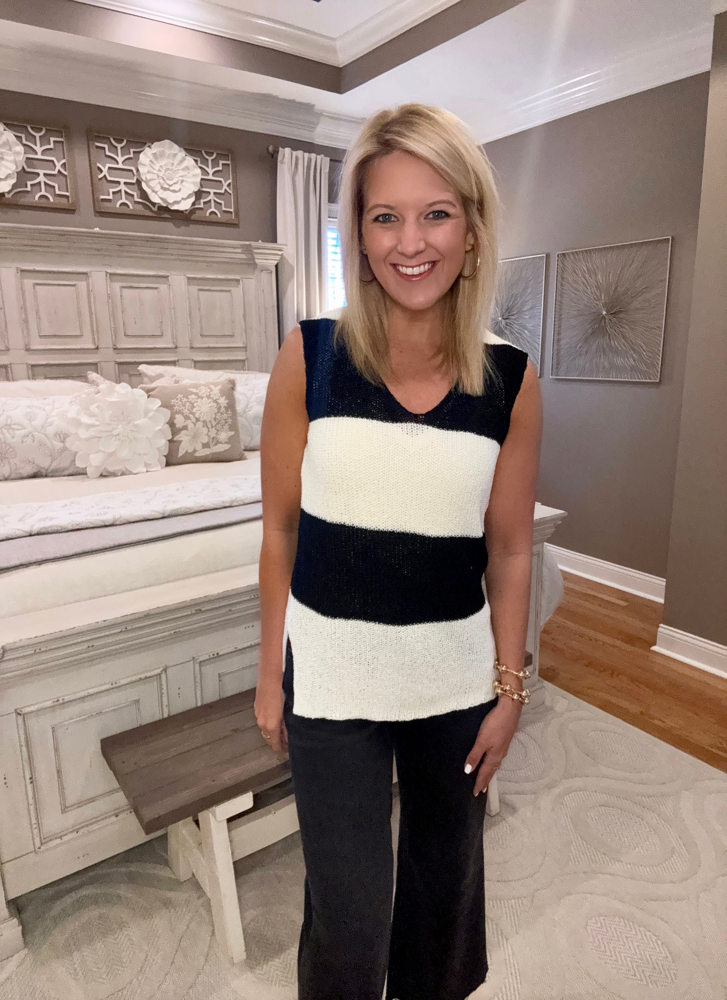 Black & Off White Stripe Sleeveless Sweater