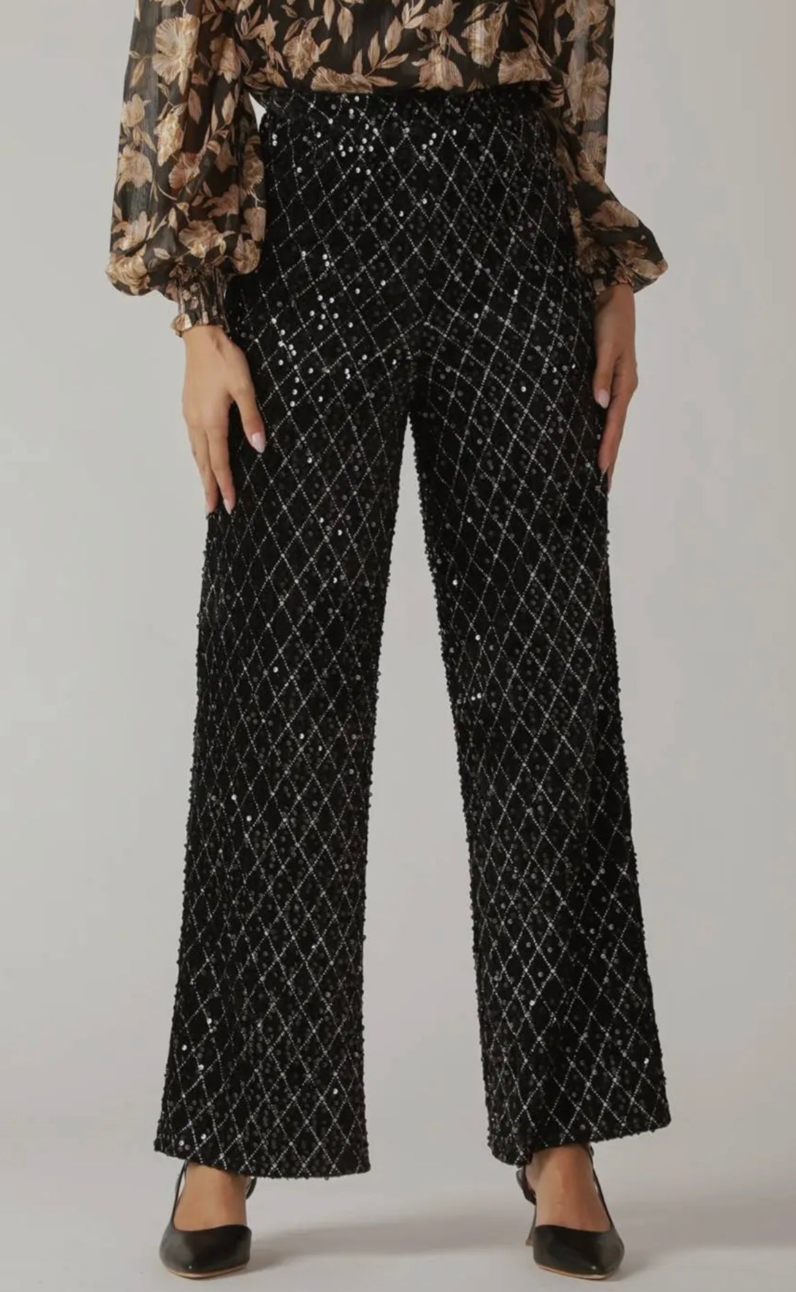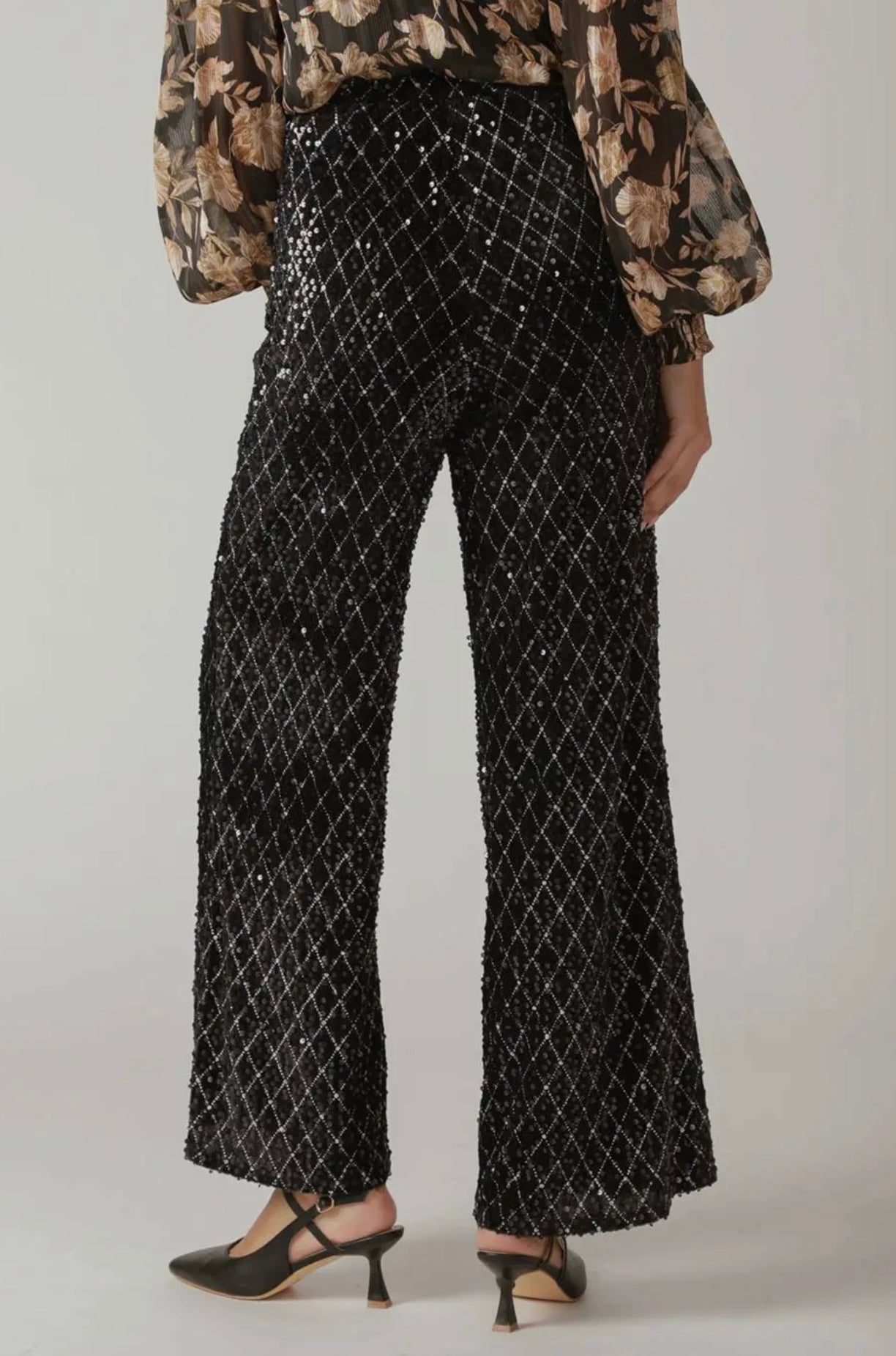 Black Sequin Wide Leg Pant