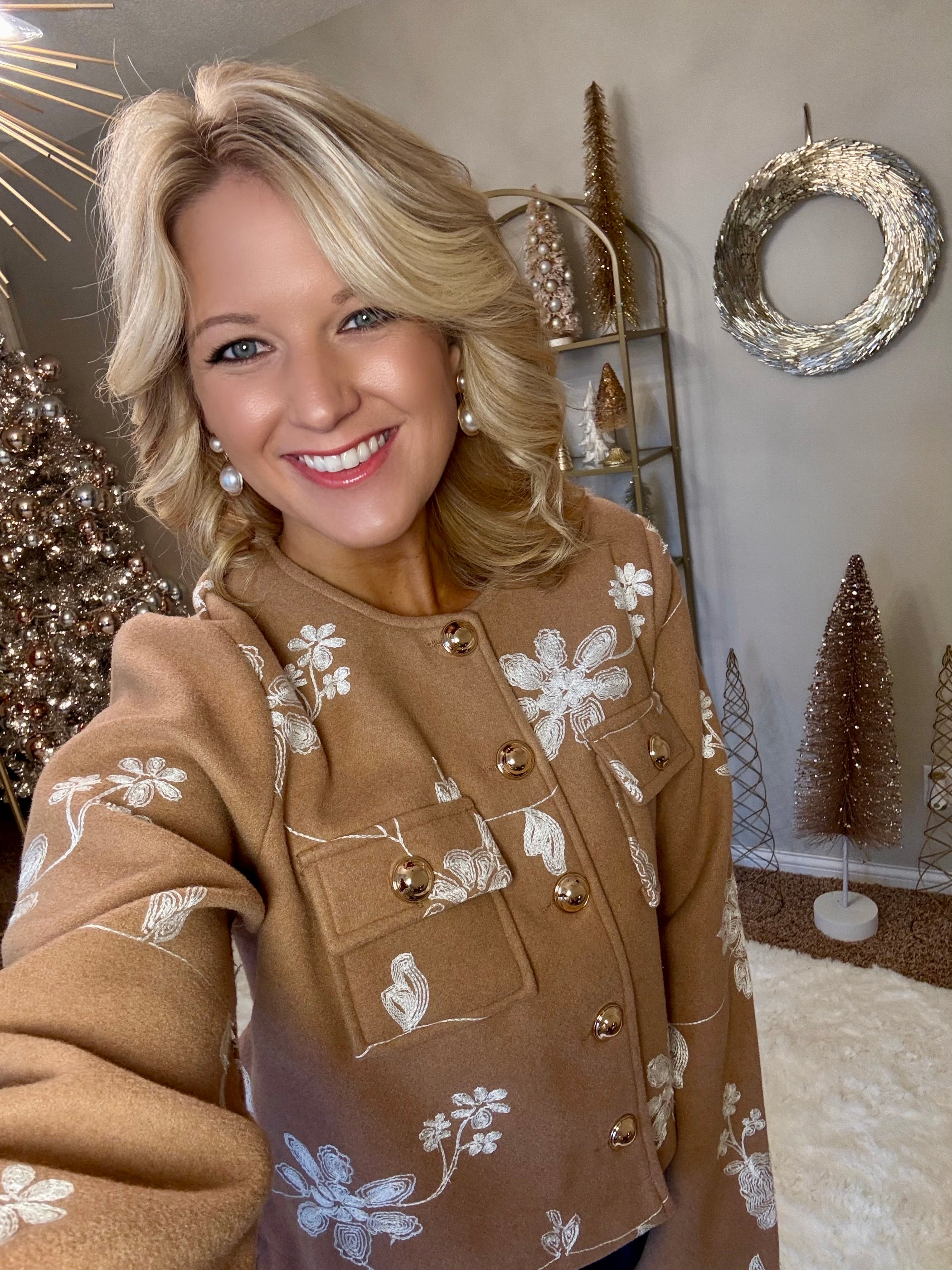 Floral Embroidered Detail Jacket with Gold Buttons