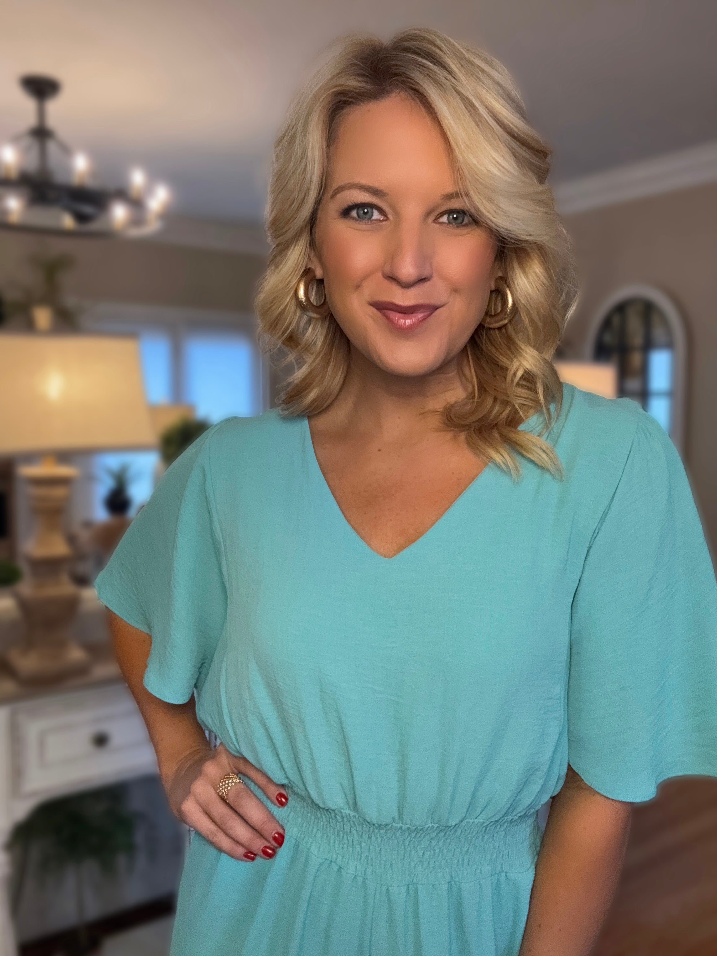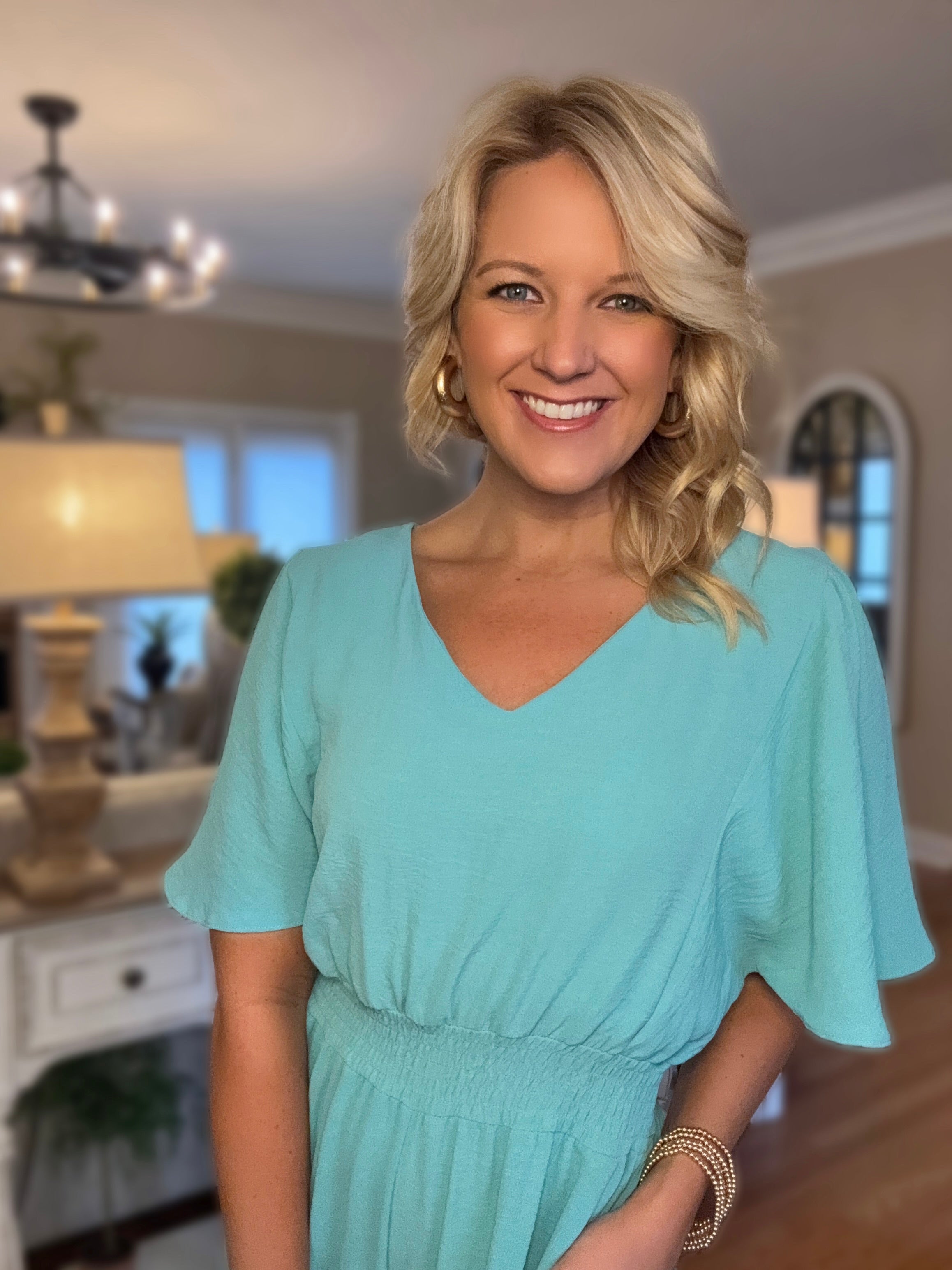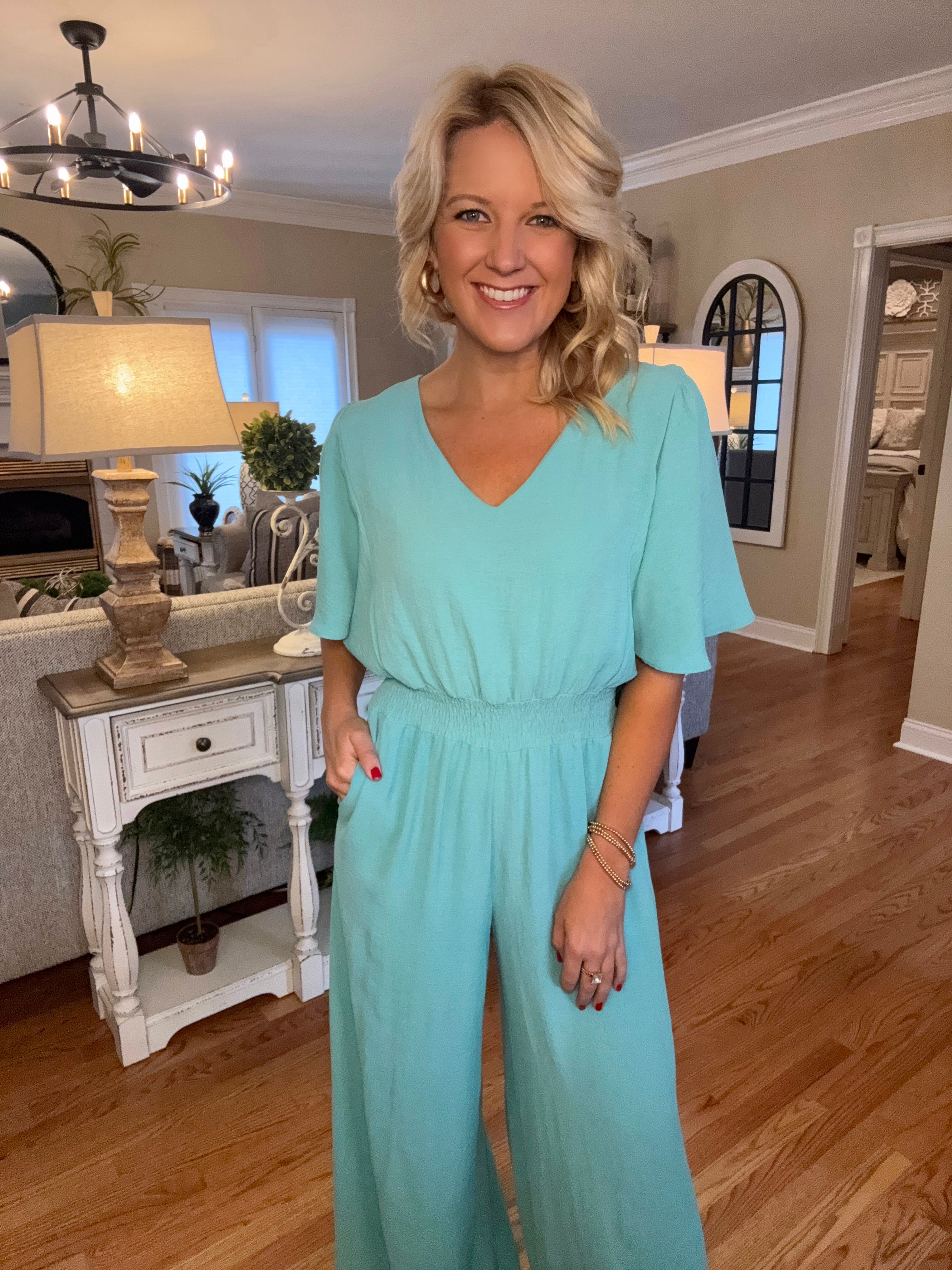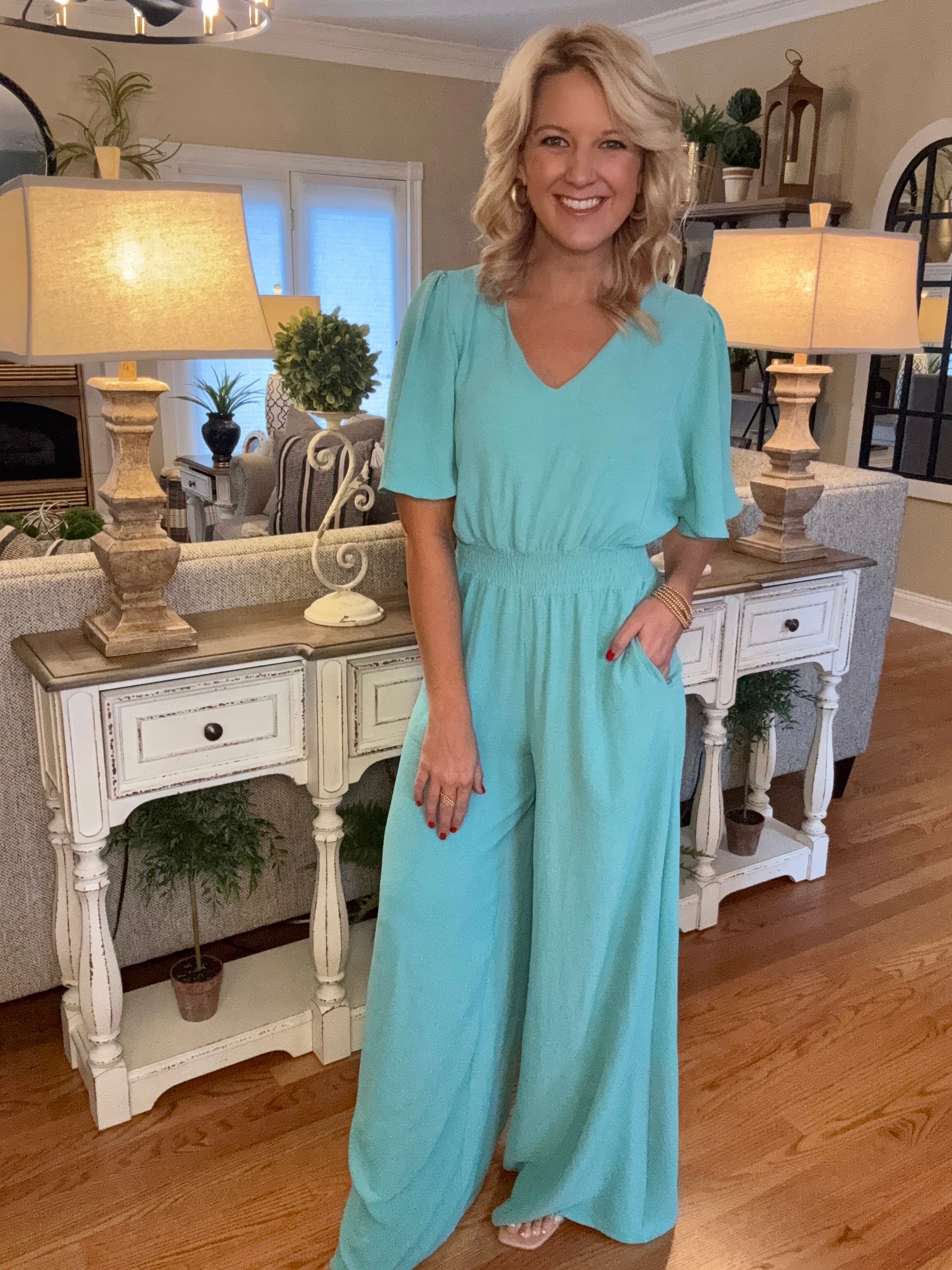 Mint Jumpsuit with Cinched Waist Detail