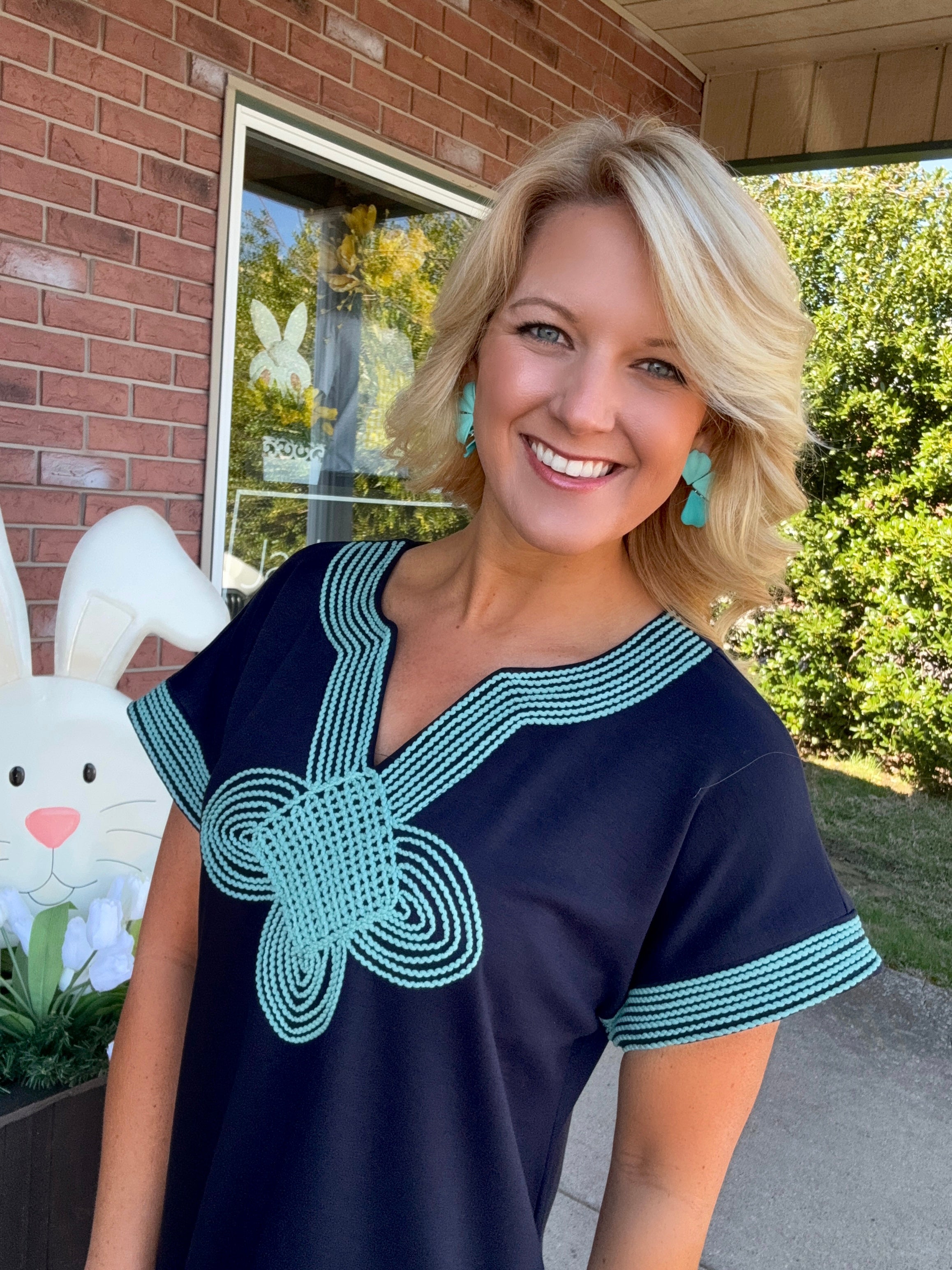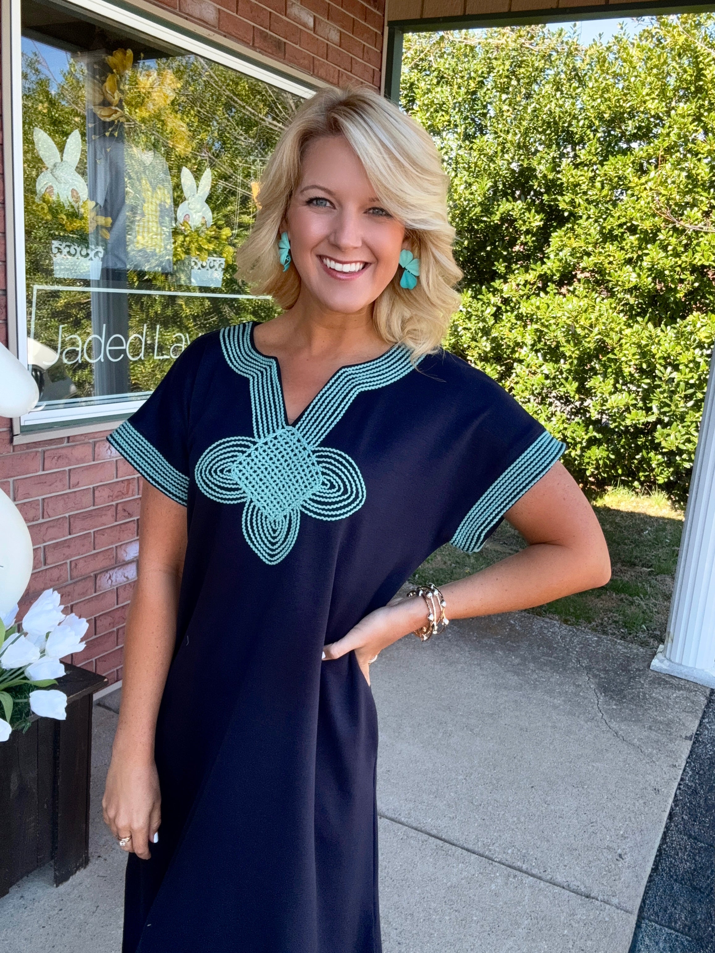 Navy & Mint Dress with Neckline Detail