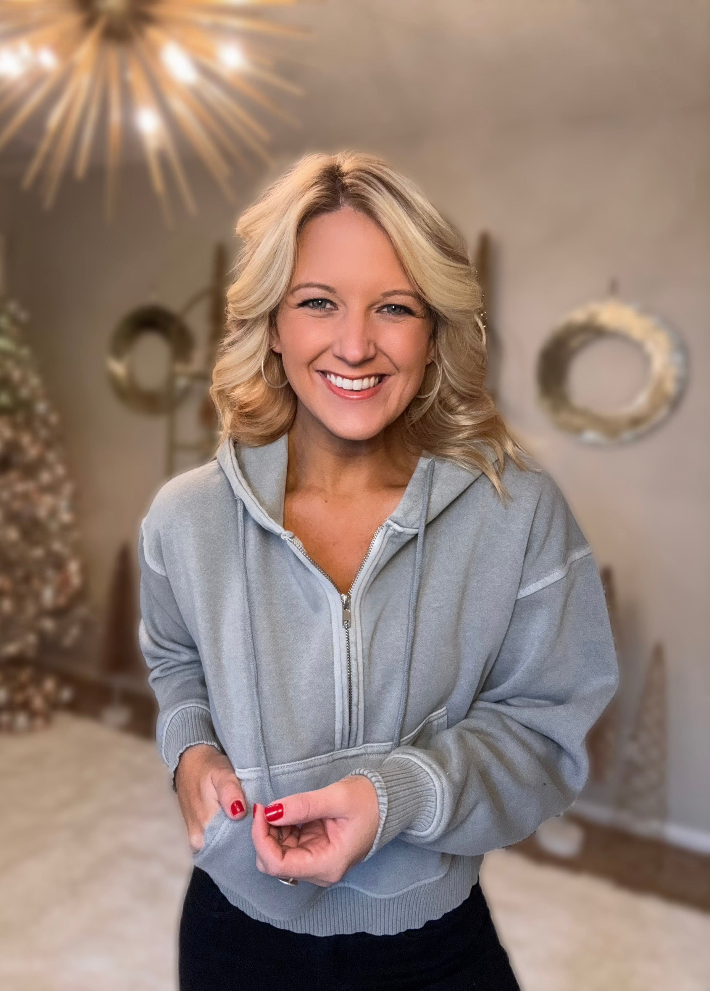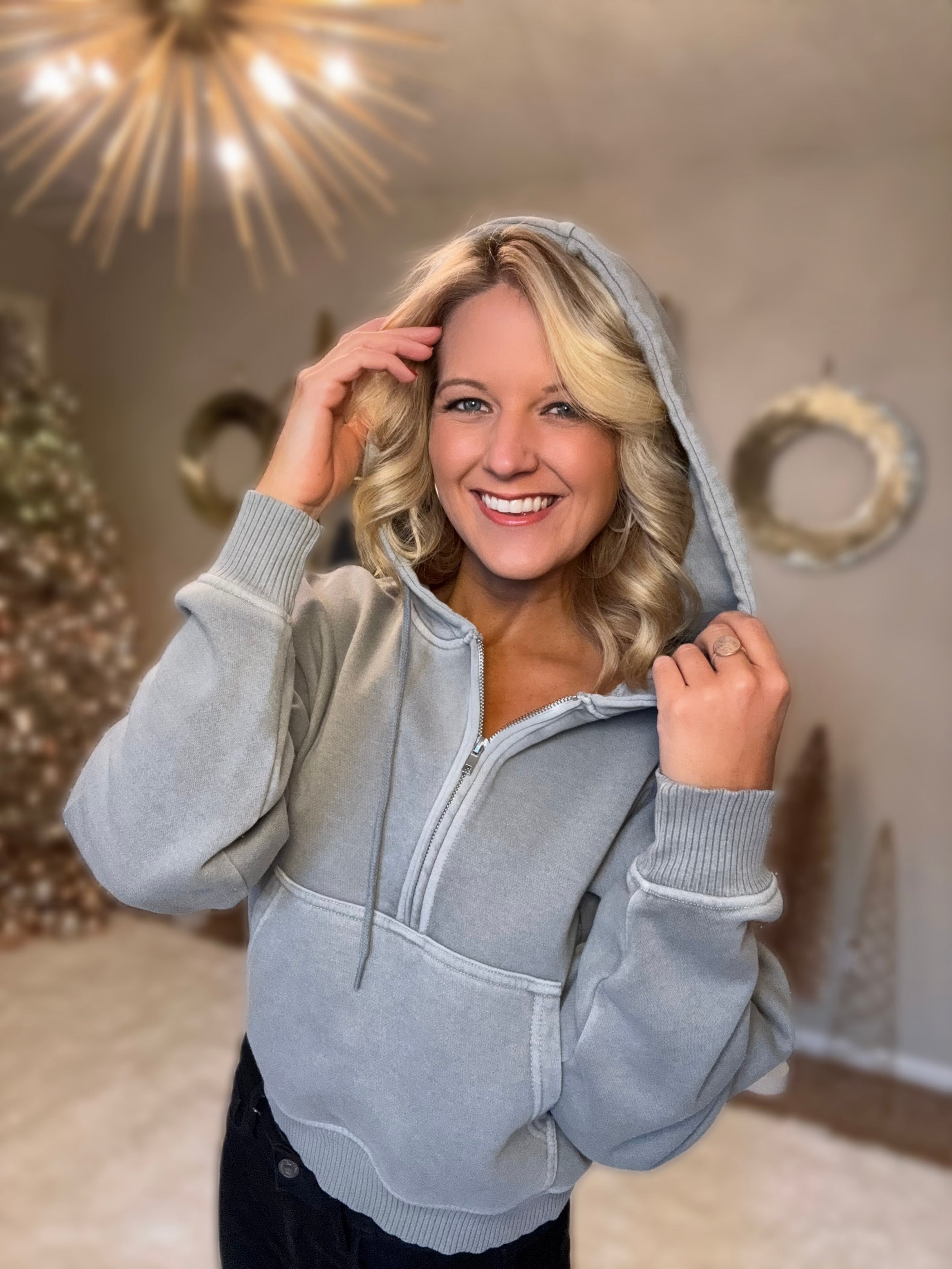 Sleet Grey Half Zip Hooded Pullover