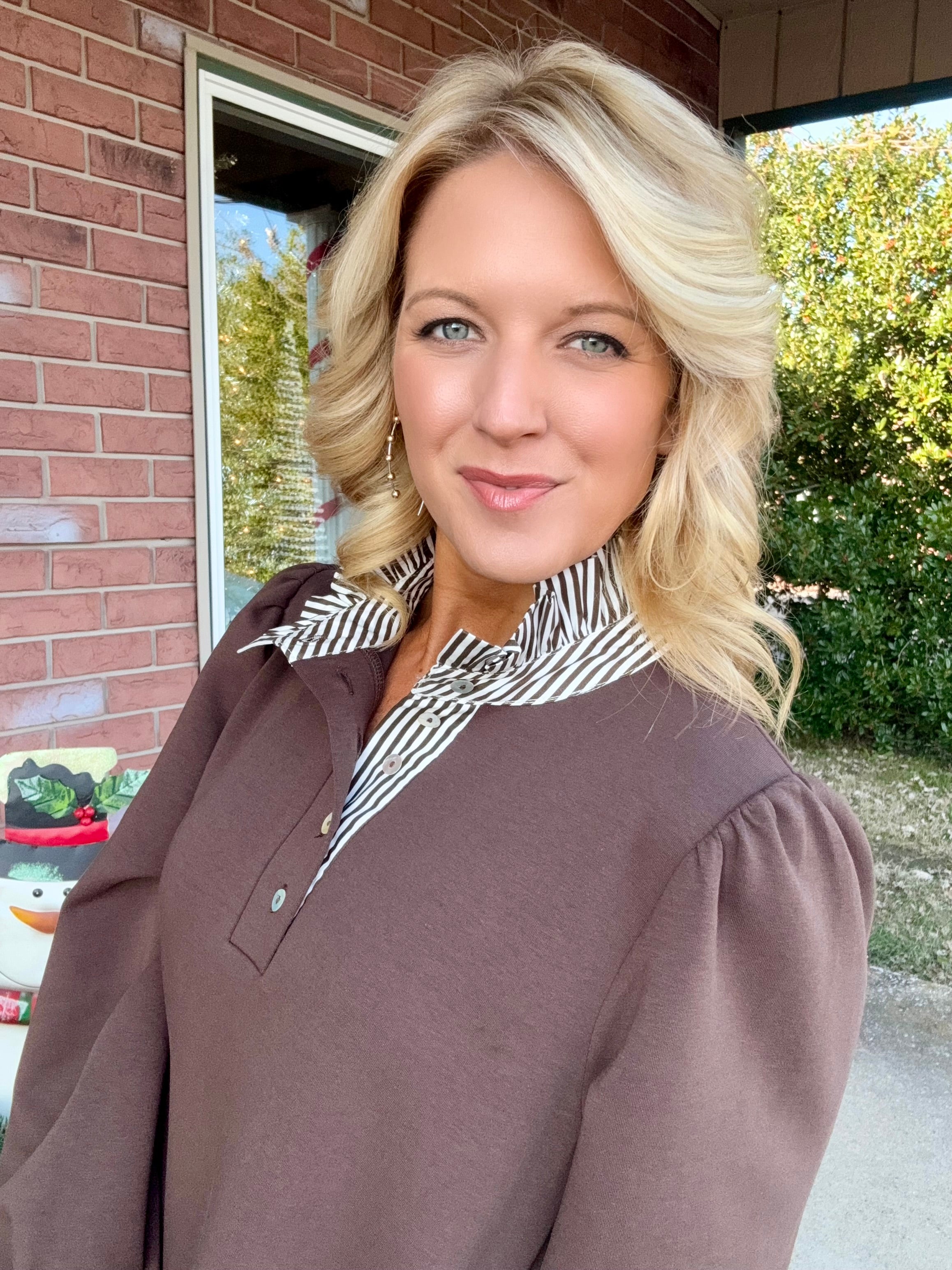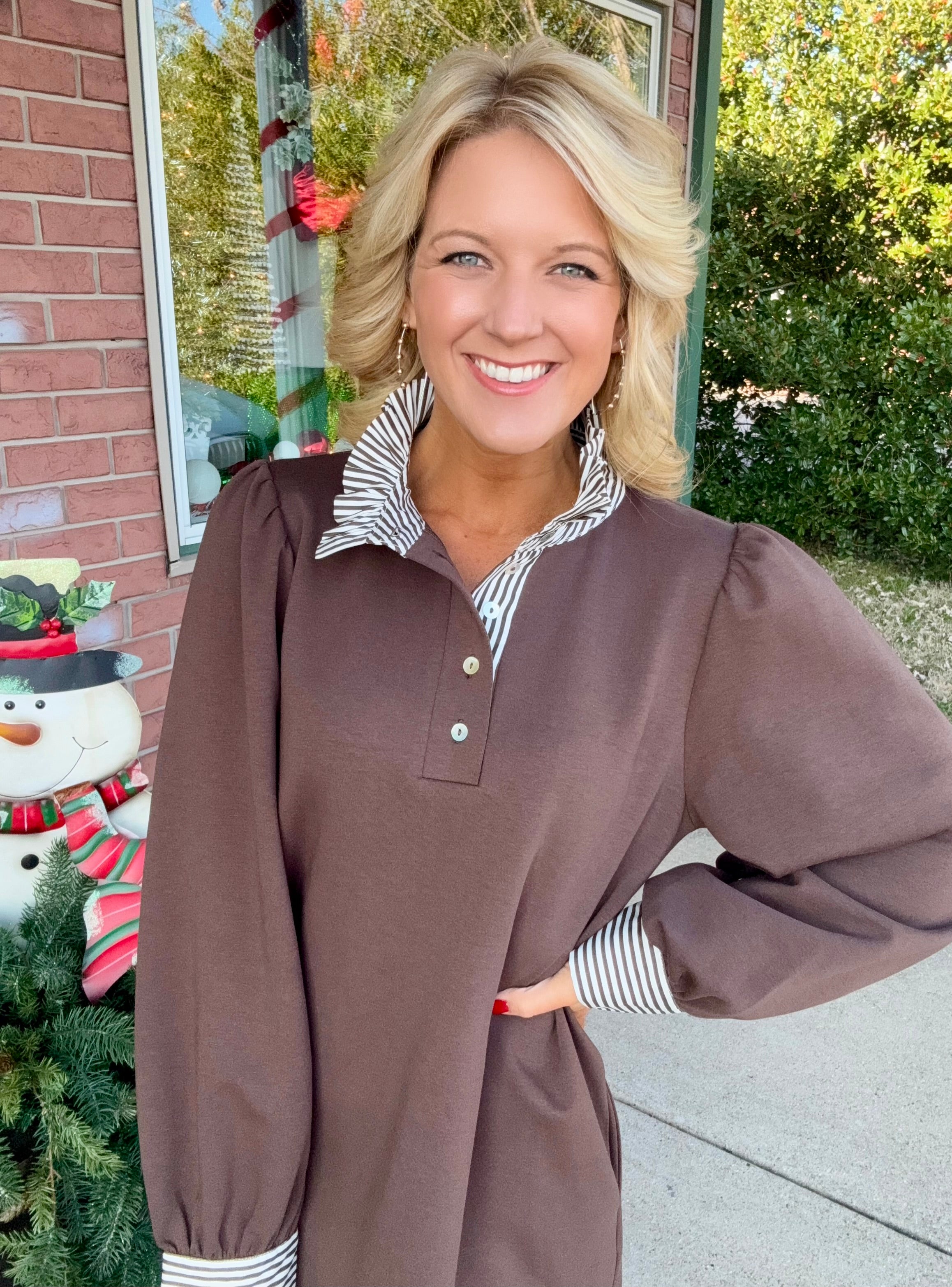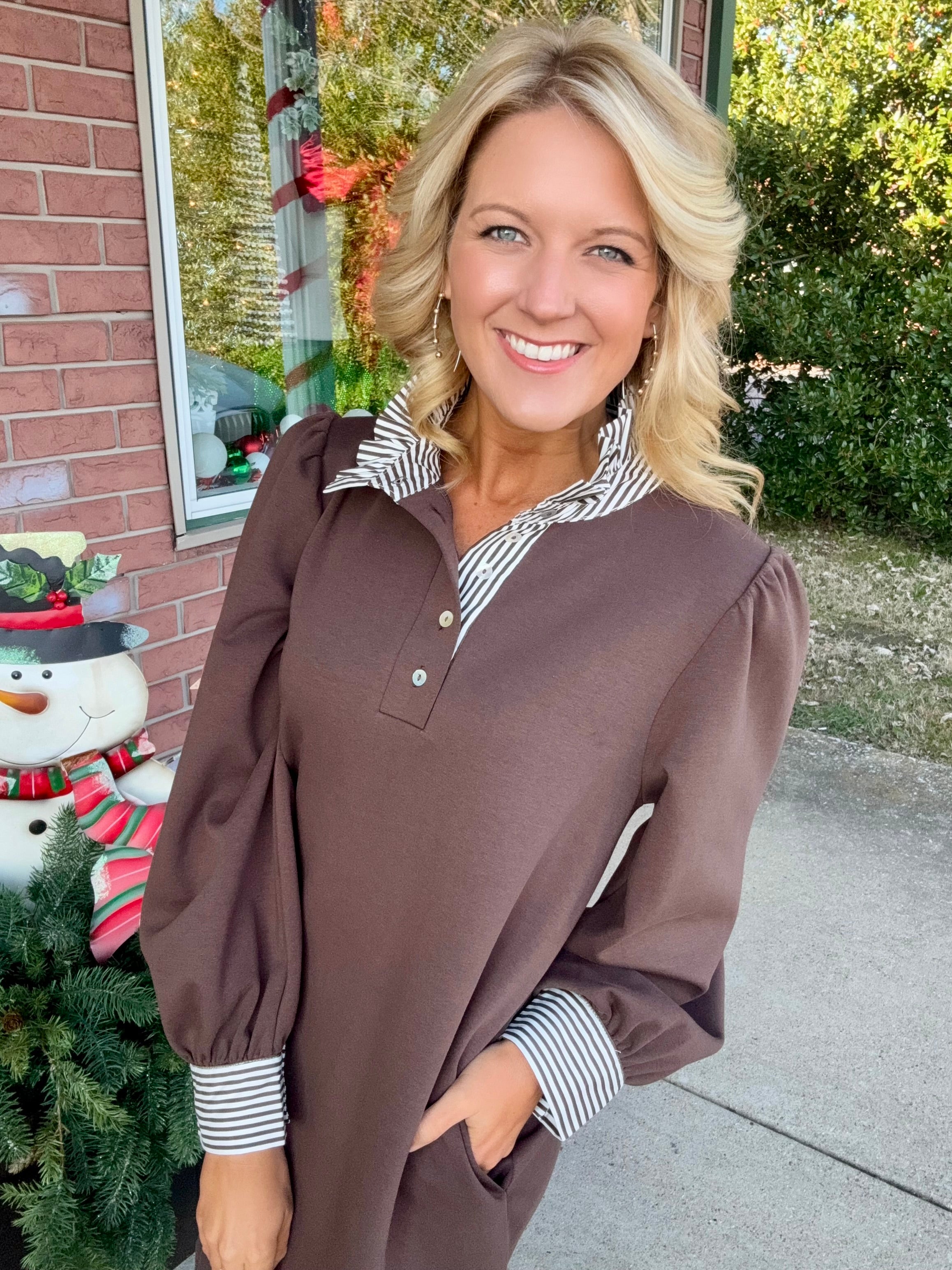 Brown Dress with Stripe Details
