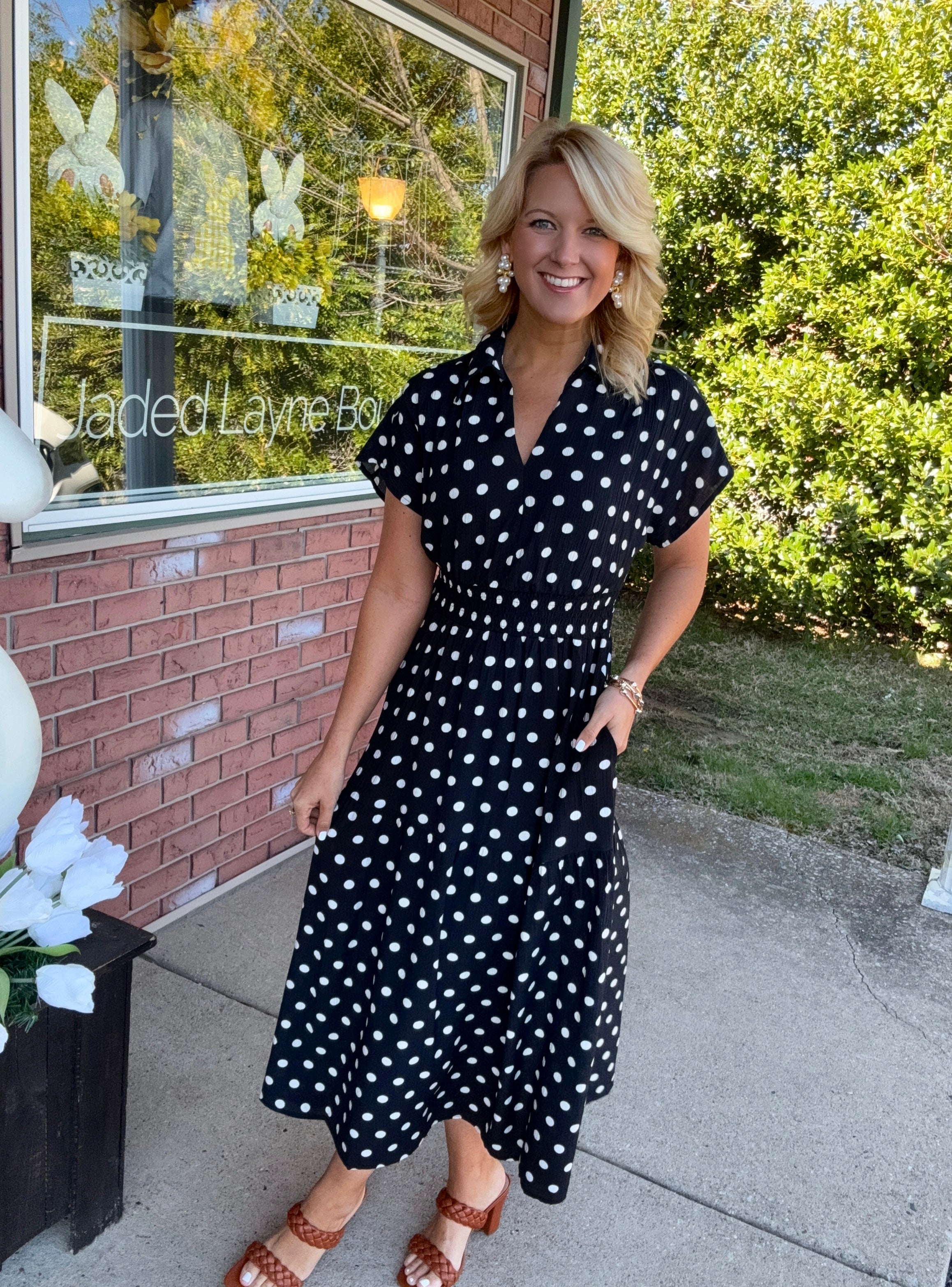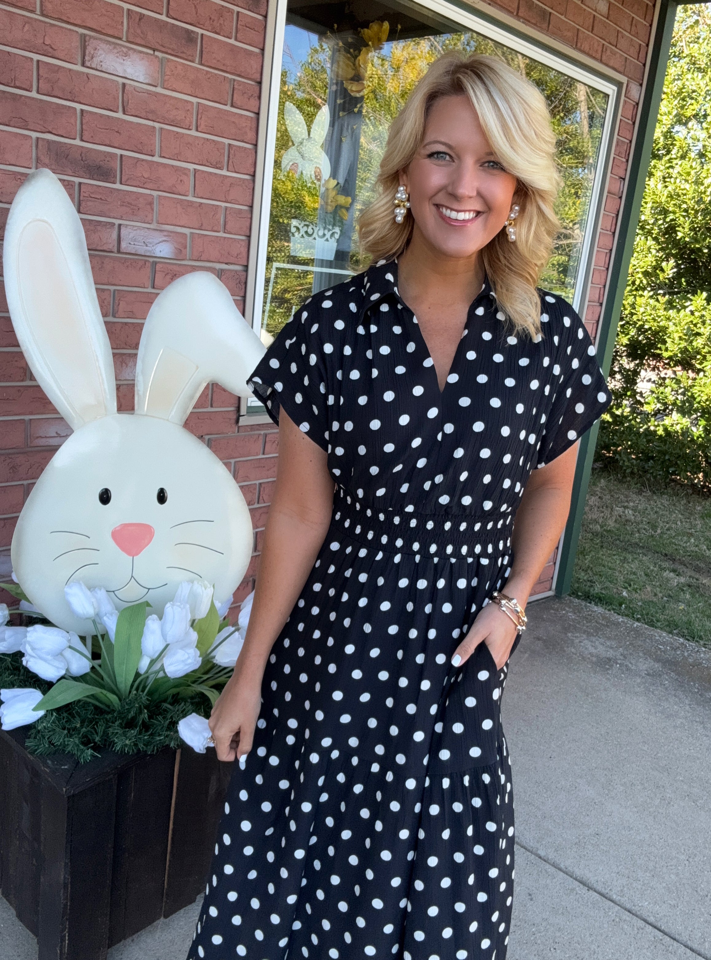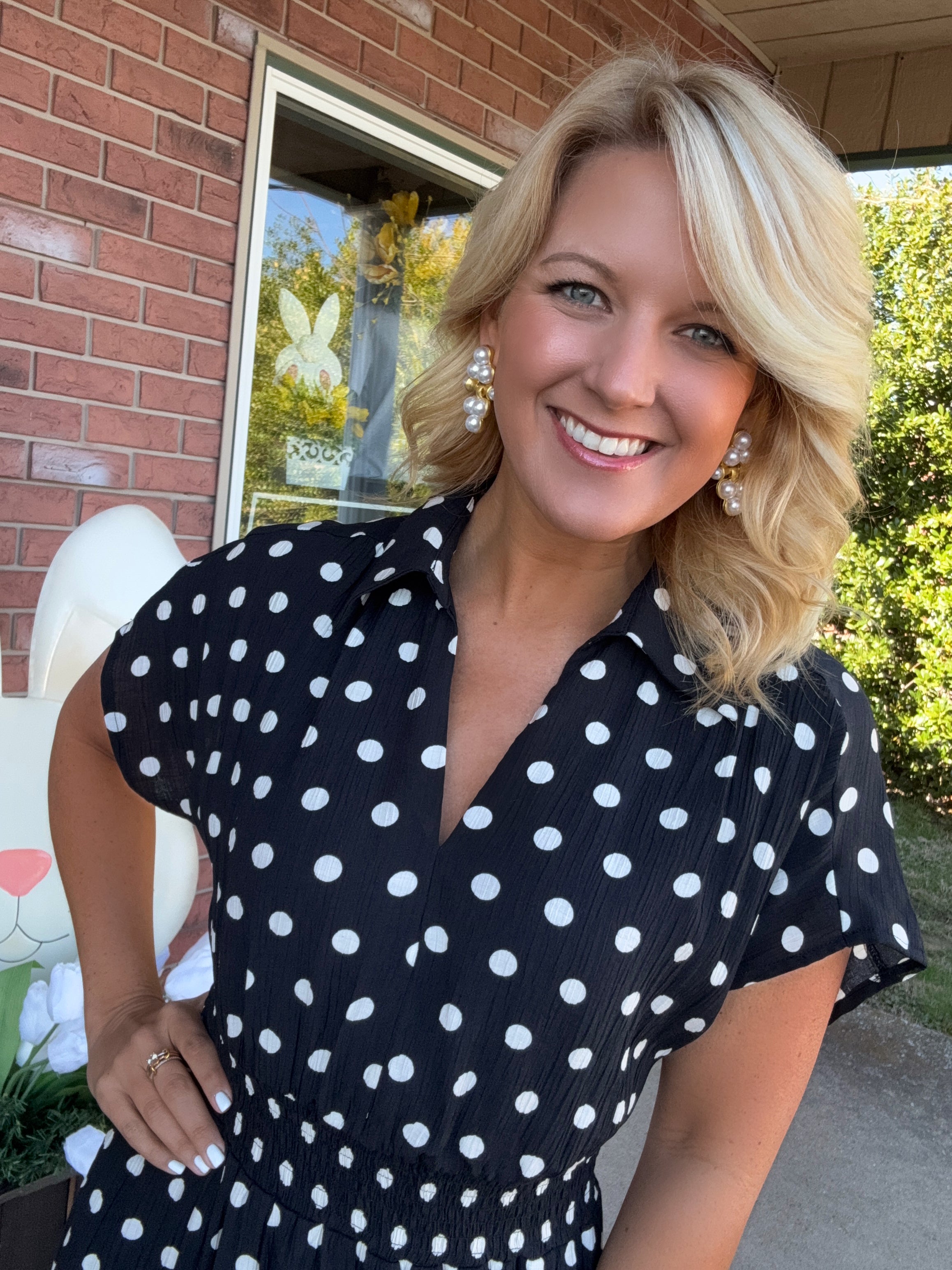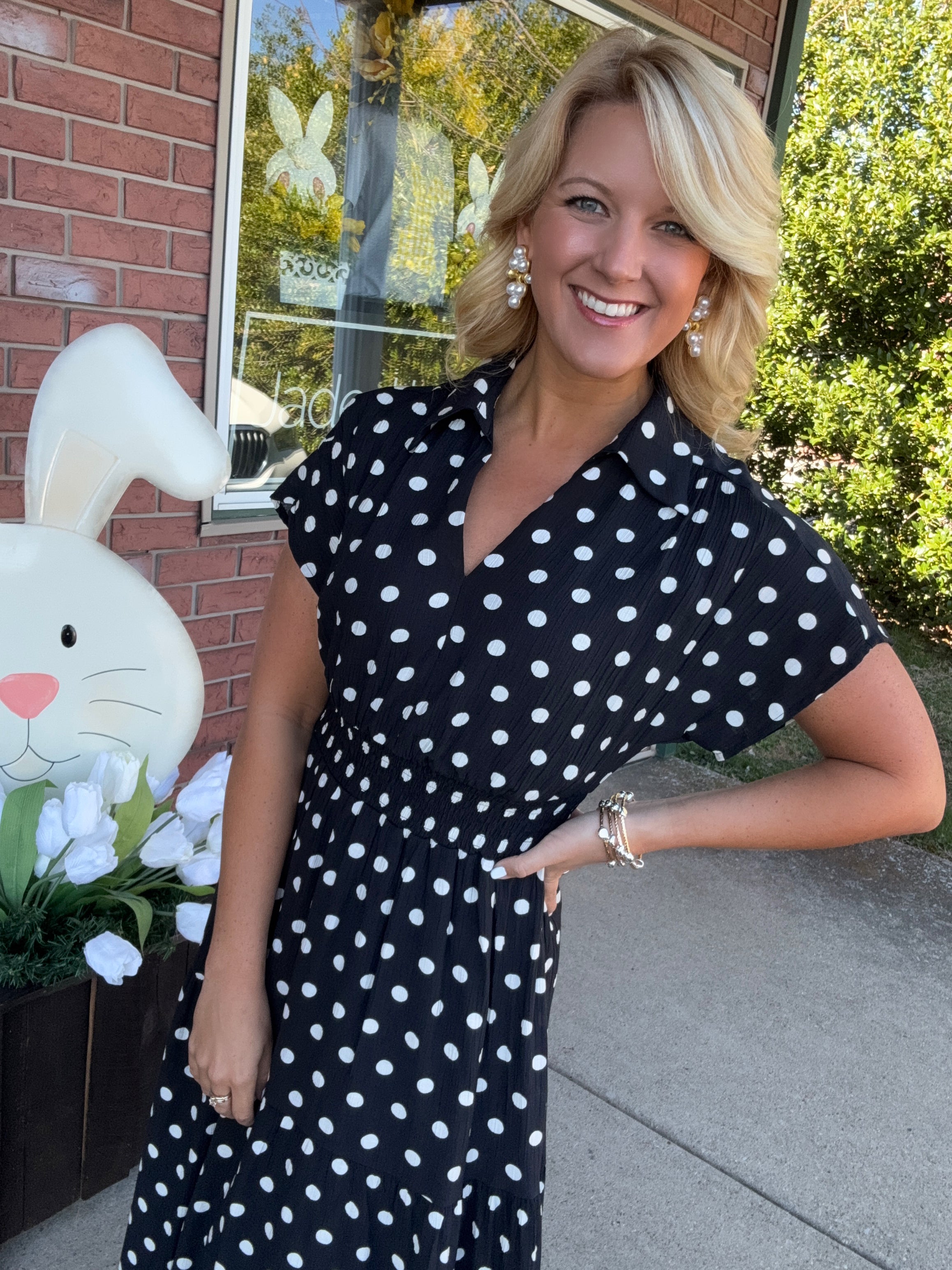 Black & White Polka Dot Dress with Smocked Waist