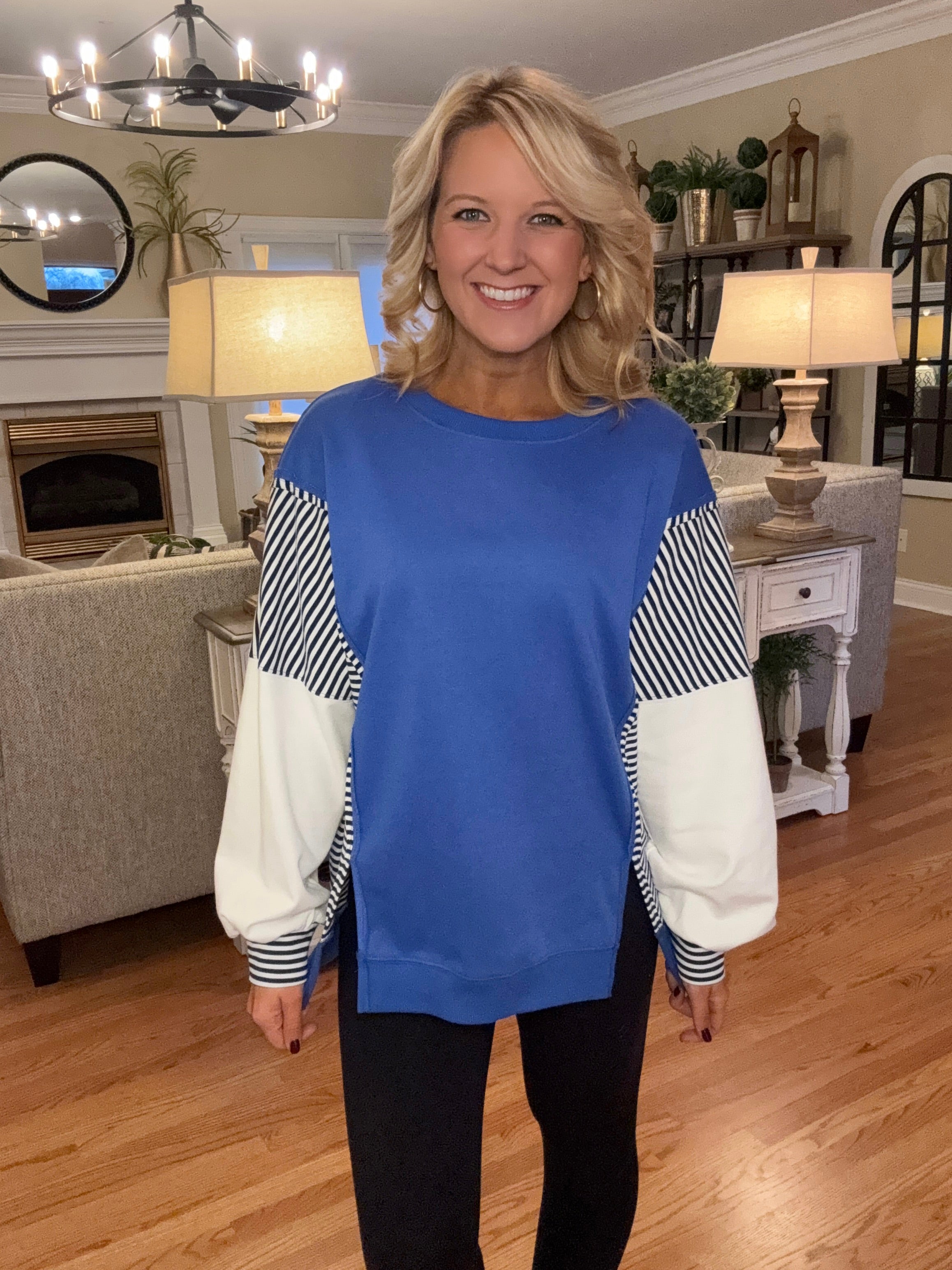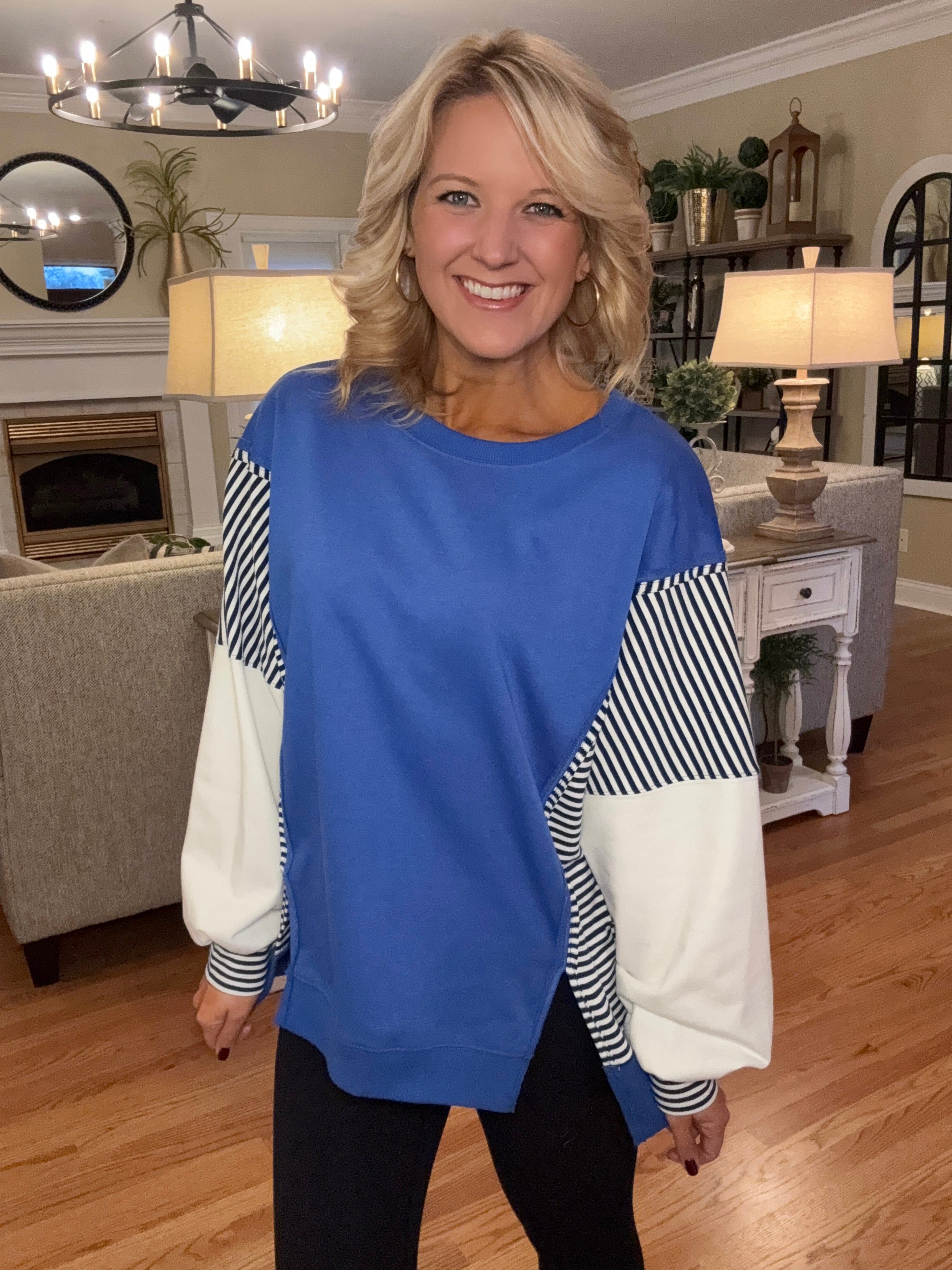 Blue Striped Patchwork Colorblock Top