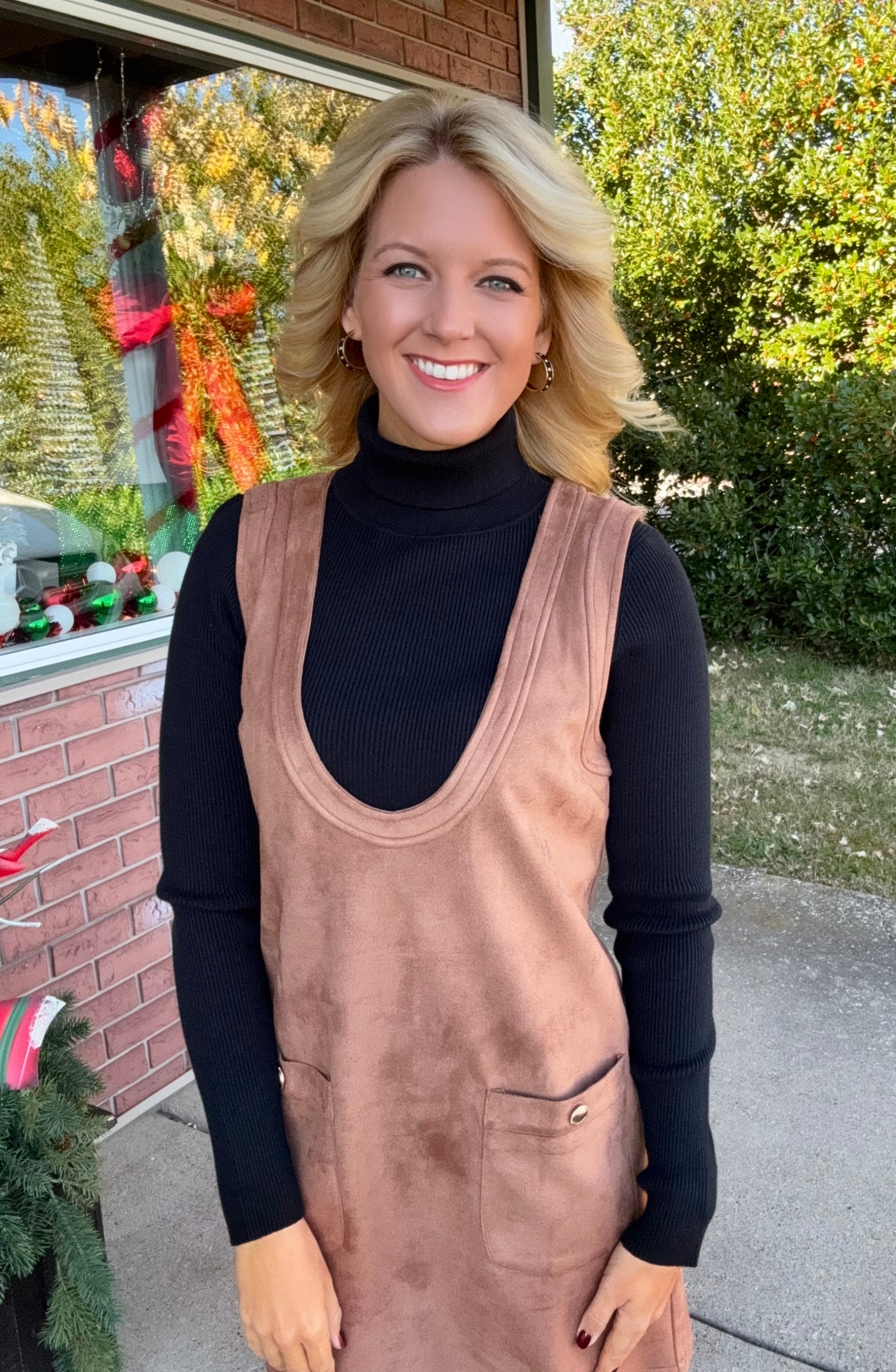 Camel Suede Dress with Pocket Details