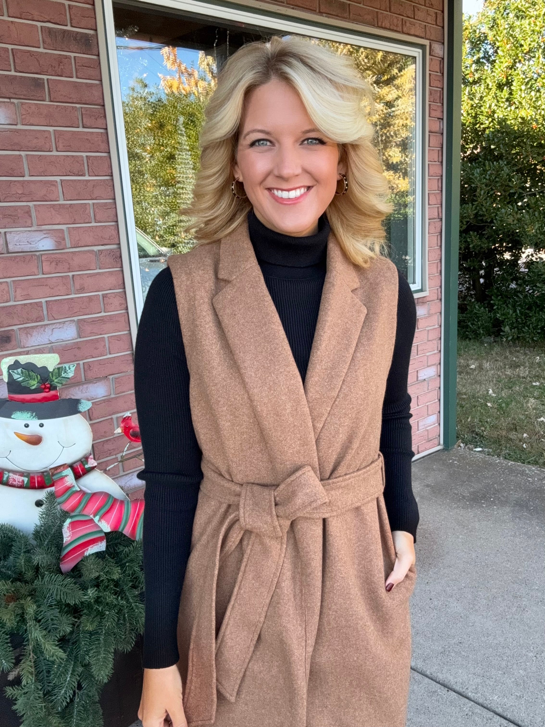 Camel Vest with Tie Belt