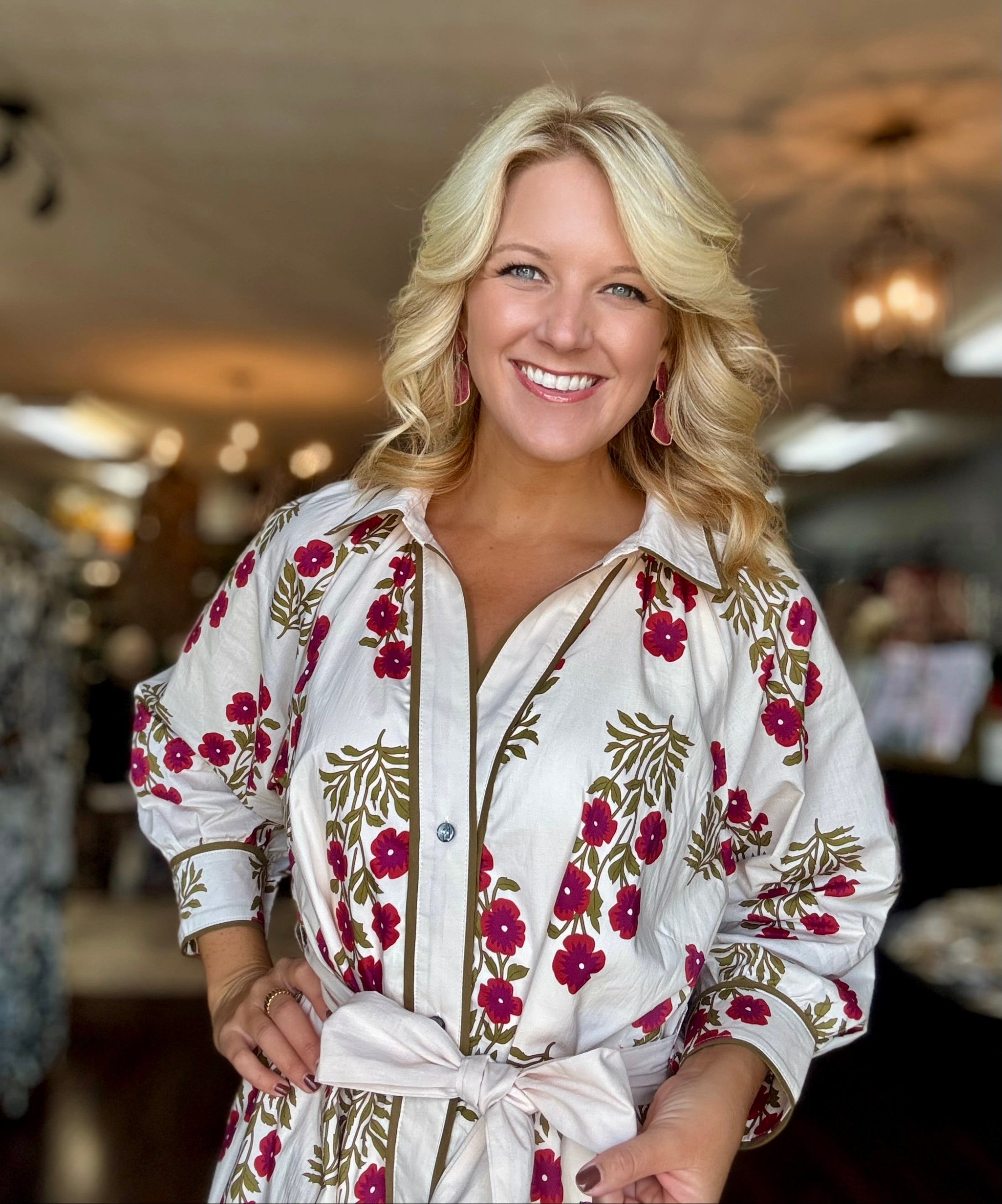 Cream Floral Button Front Midi Dress