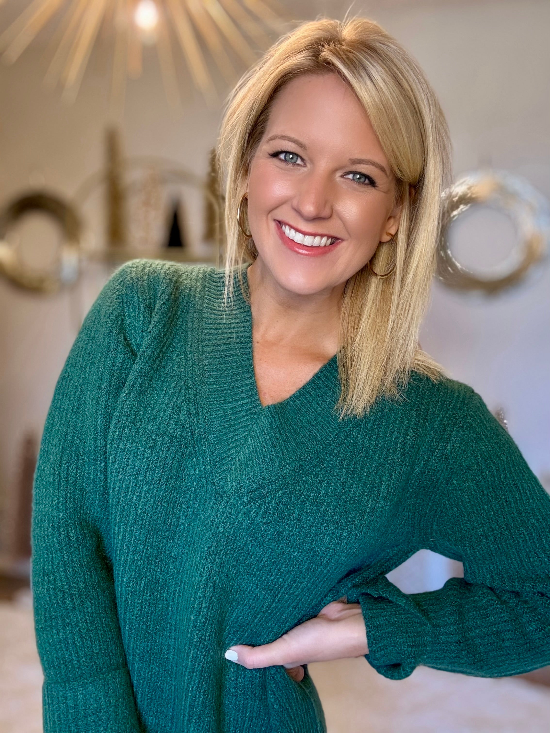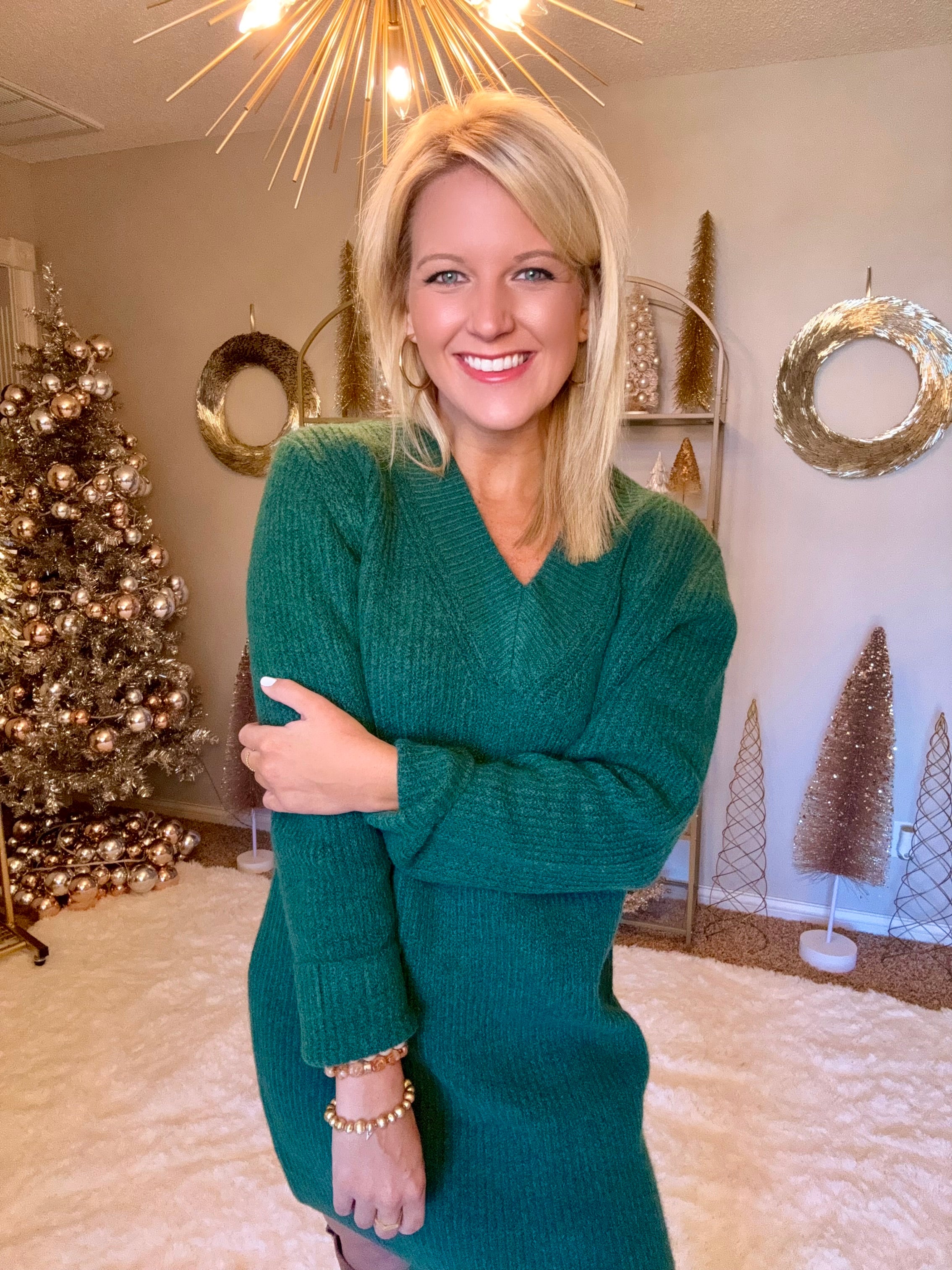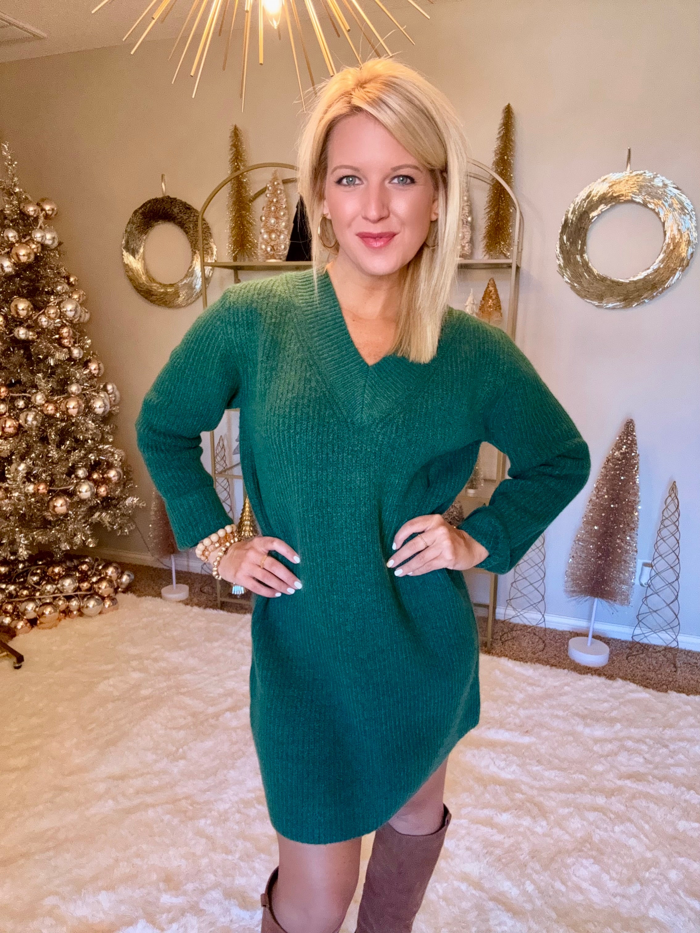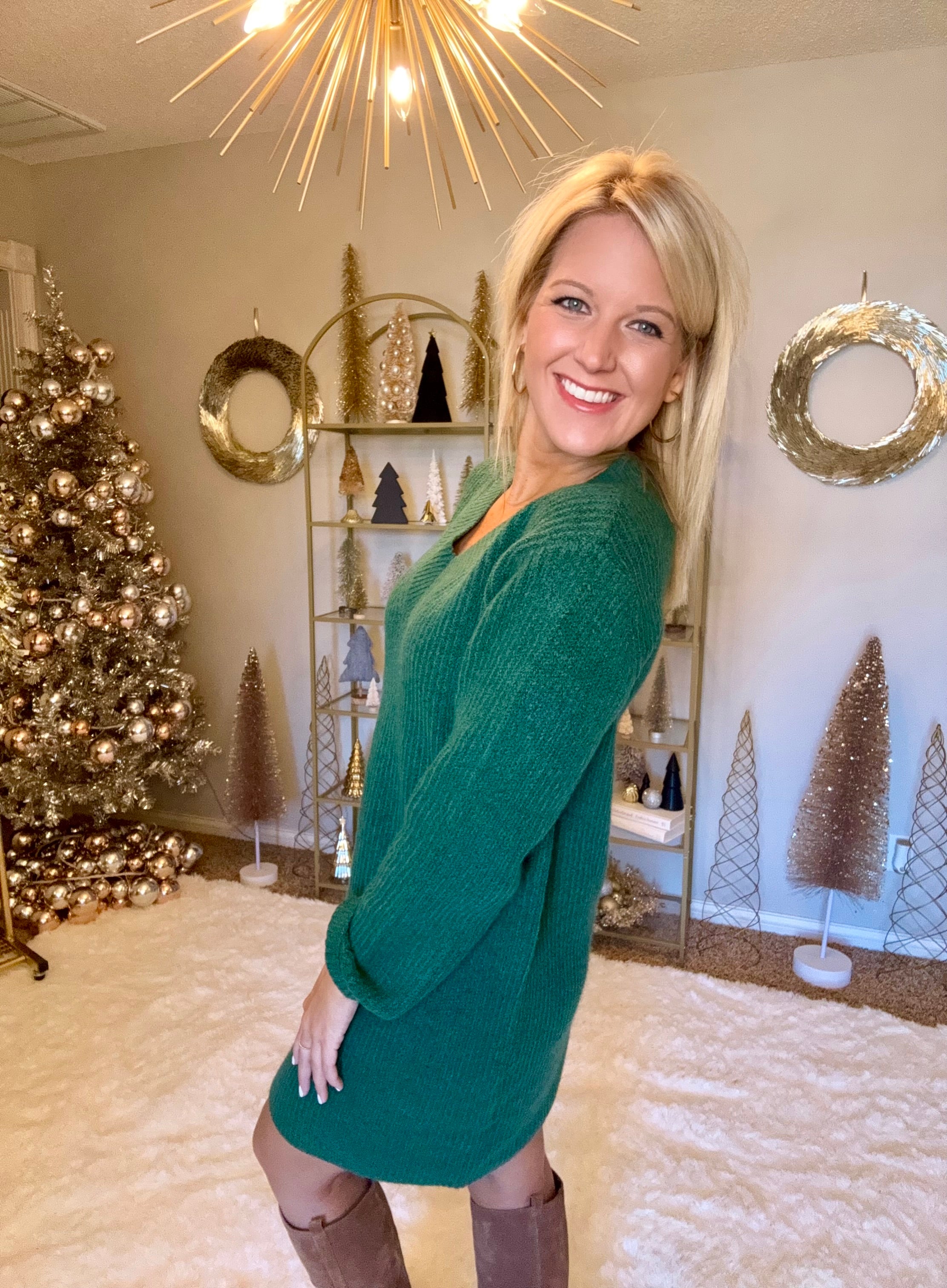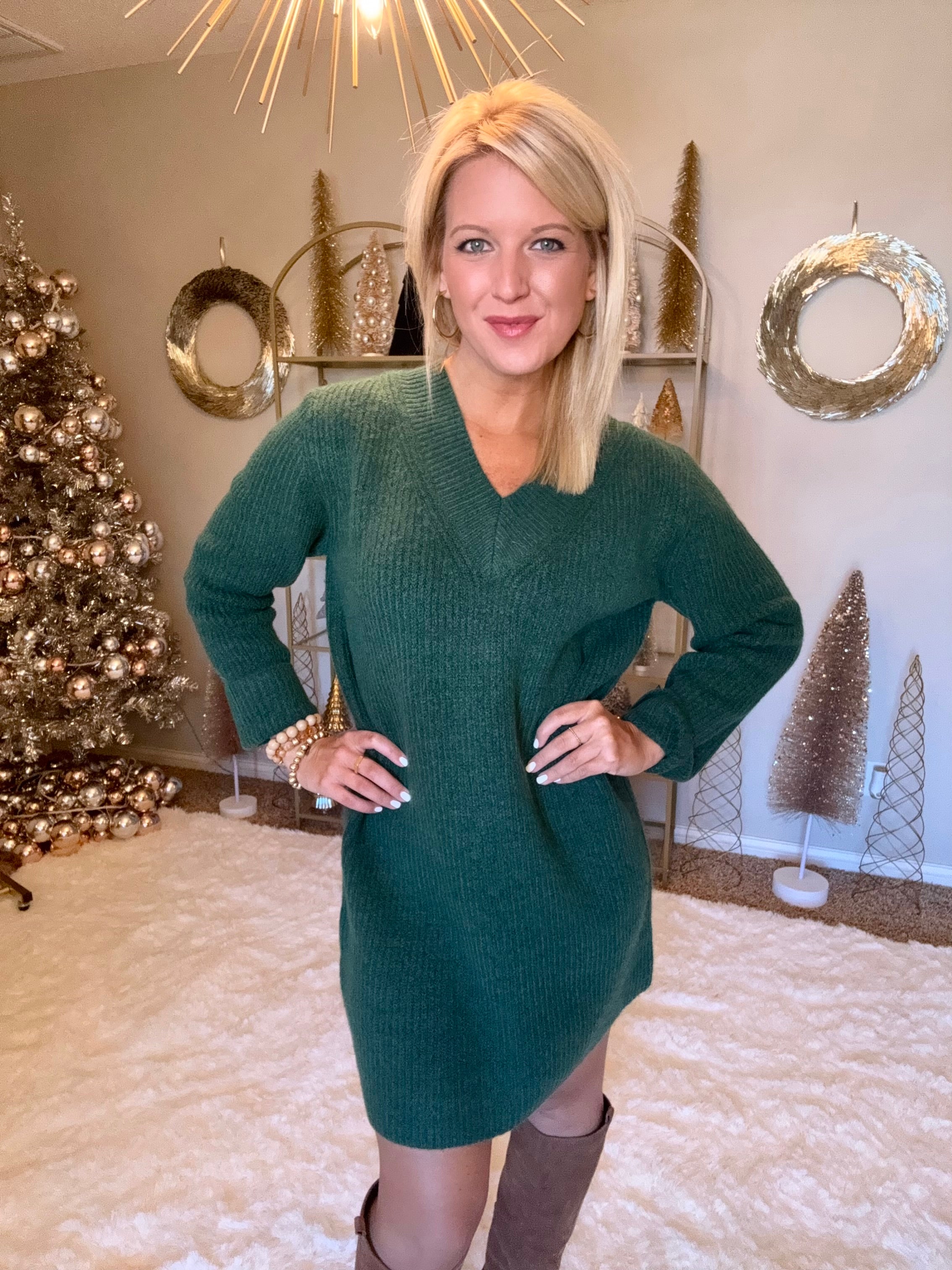 Dark Green Vneck Sweater Dress