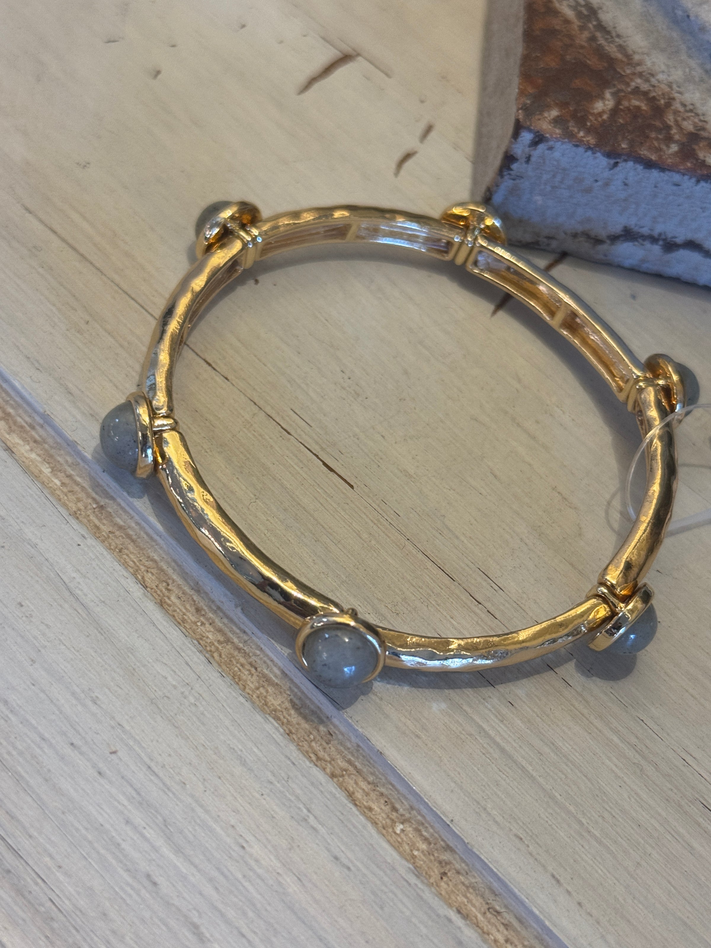 Grey & Gold Beaded Stretch Bracelet