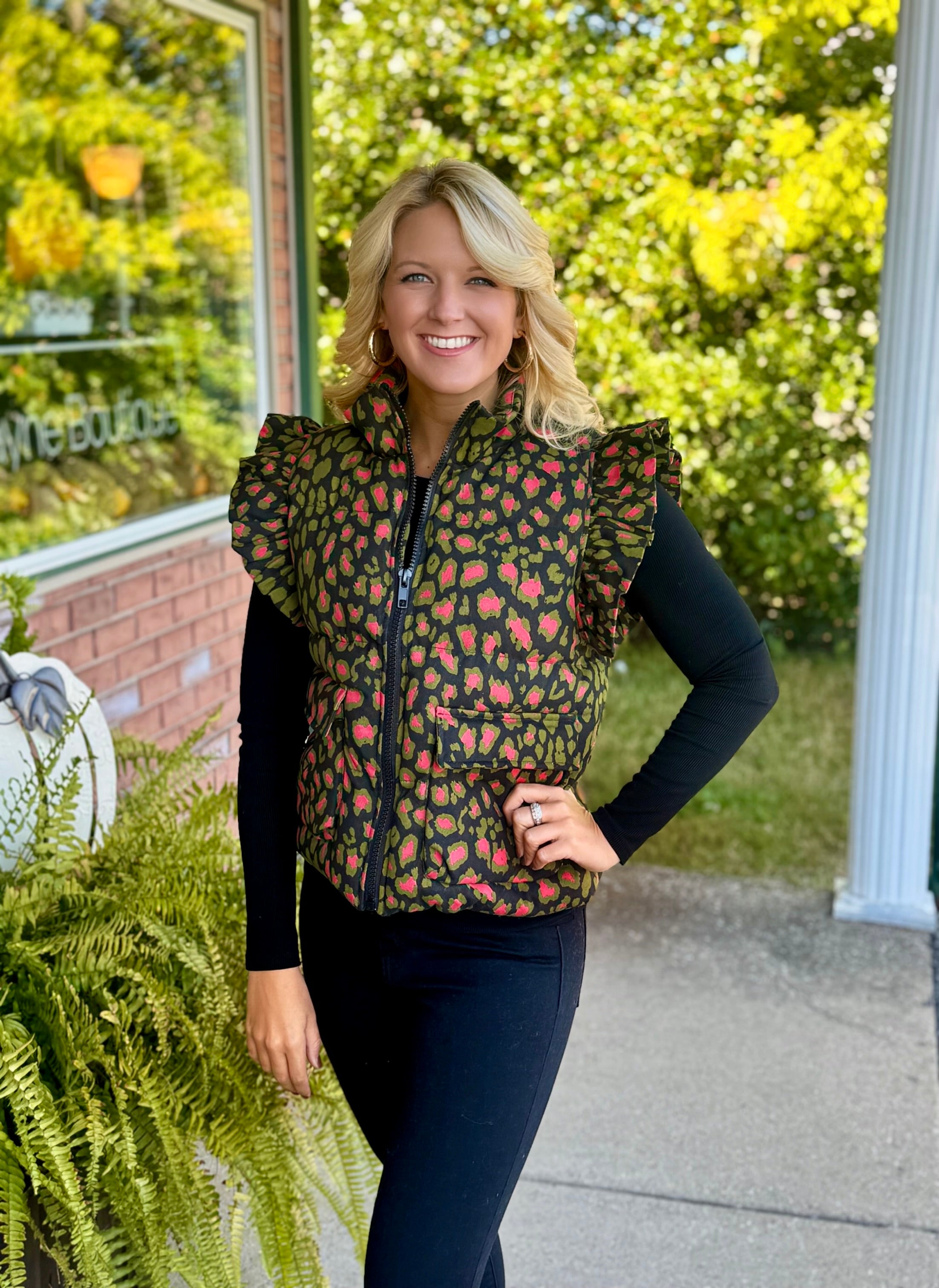 Multi Color Cheetah Vest with Ruffle Sleeve Details