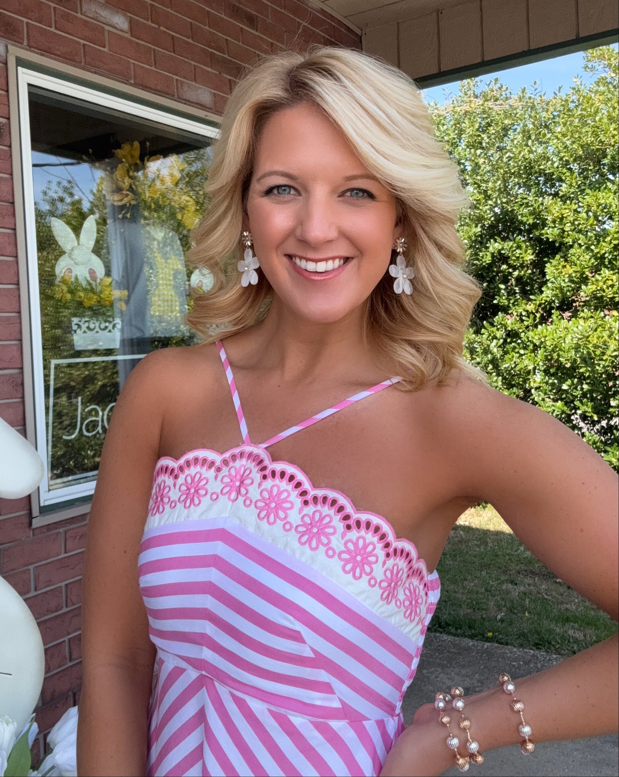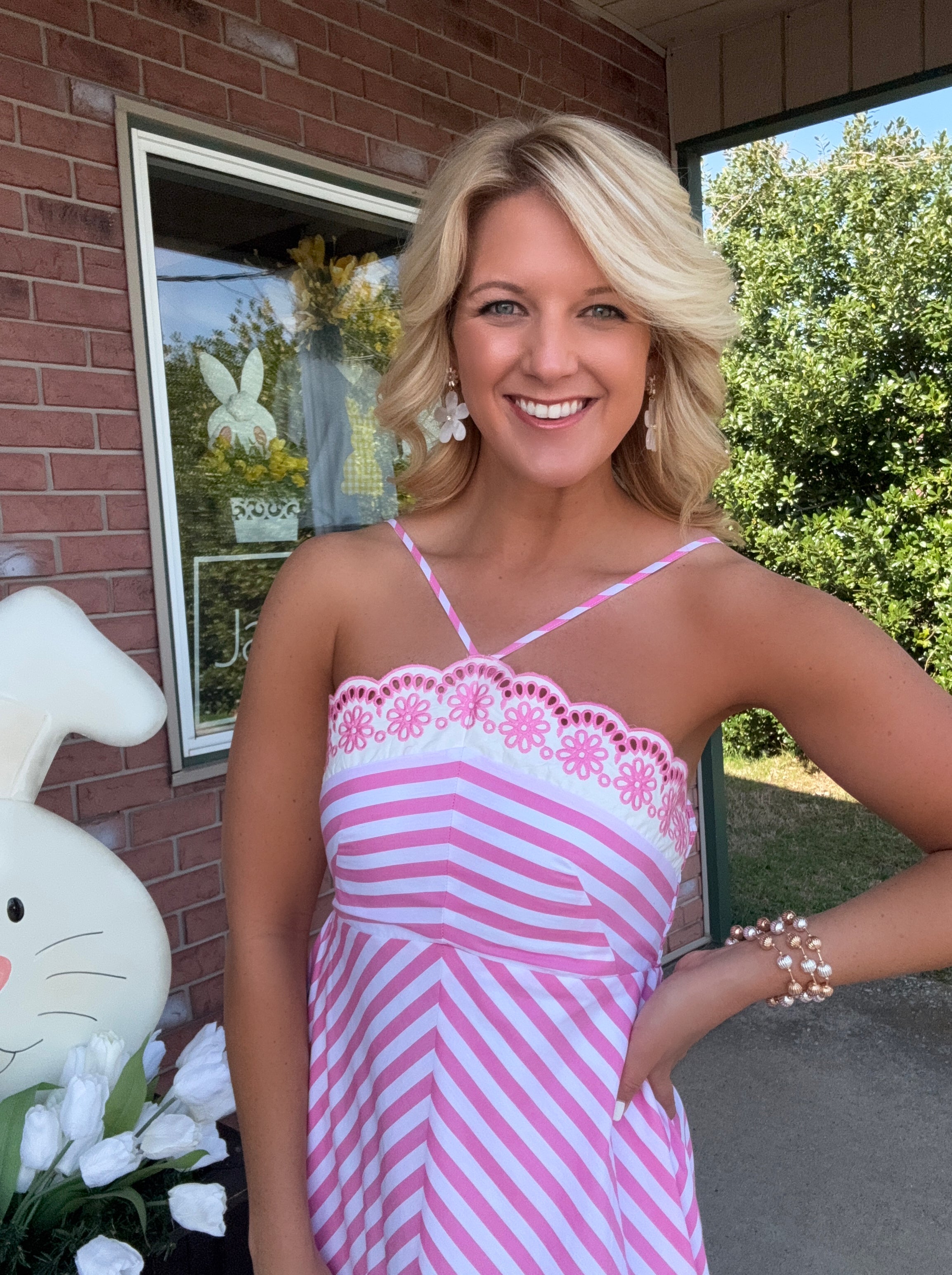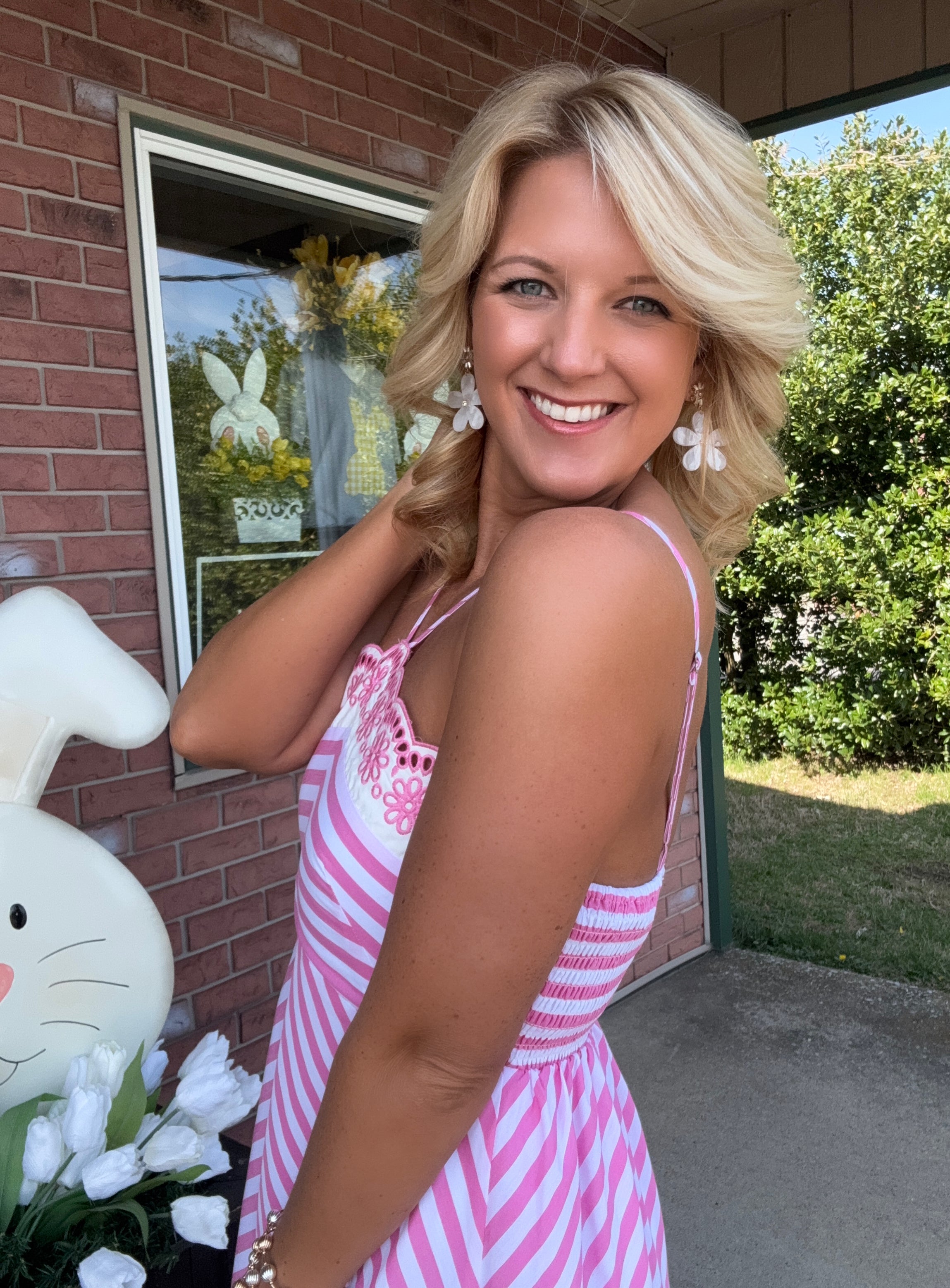 Pink & White Stripe Maxi Dress with Neckline Detail