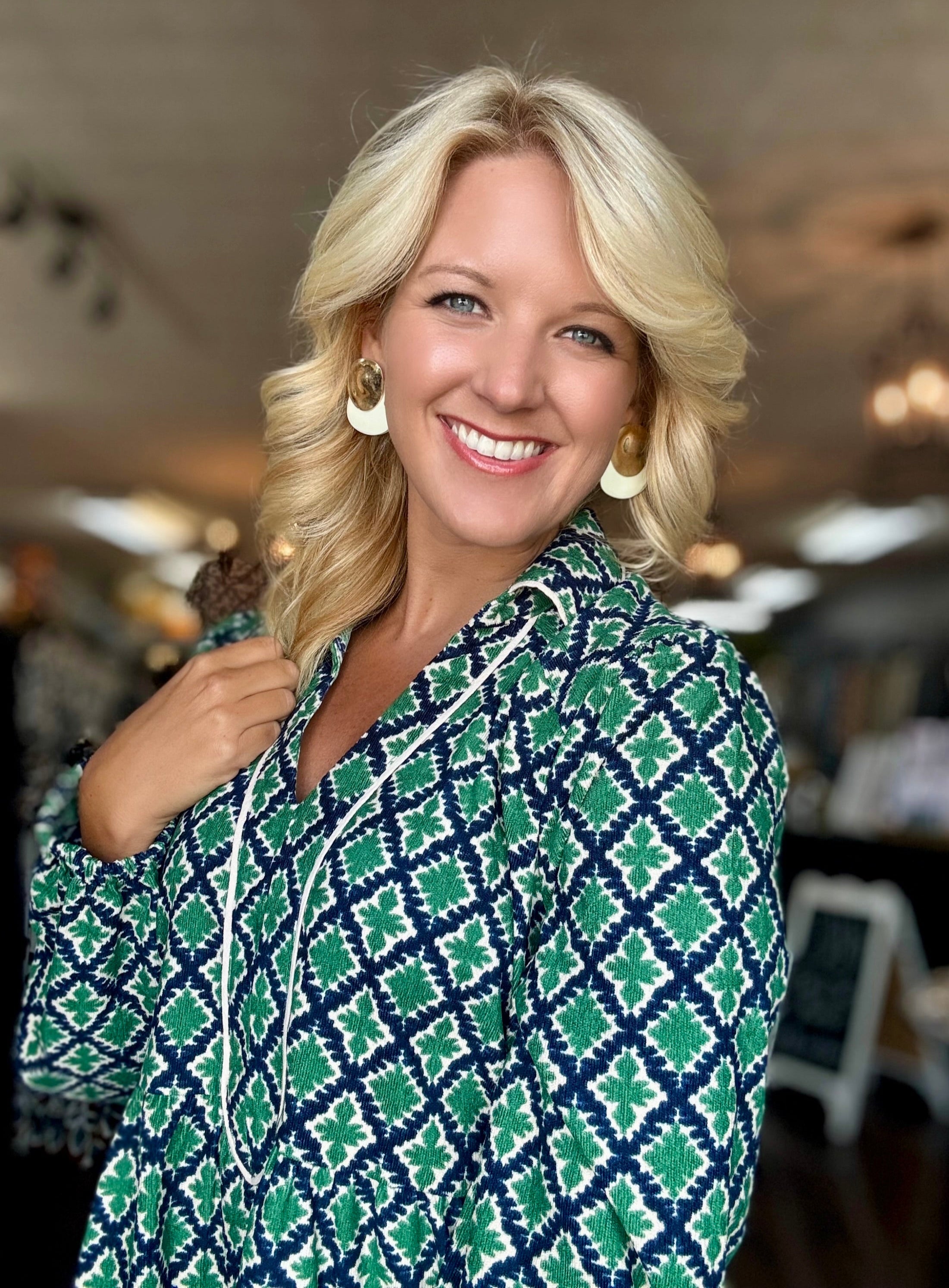Printed Corduroy Ruffle Dress