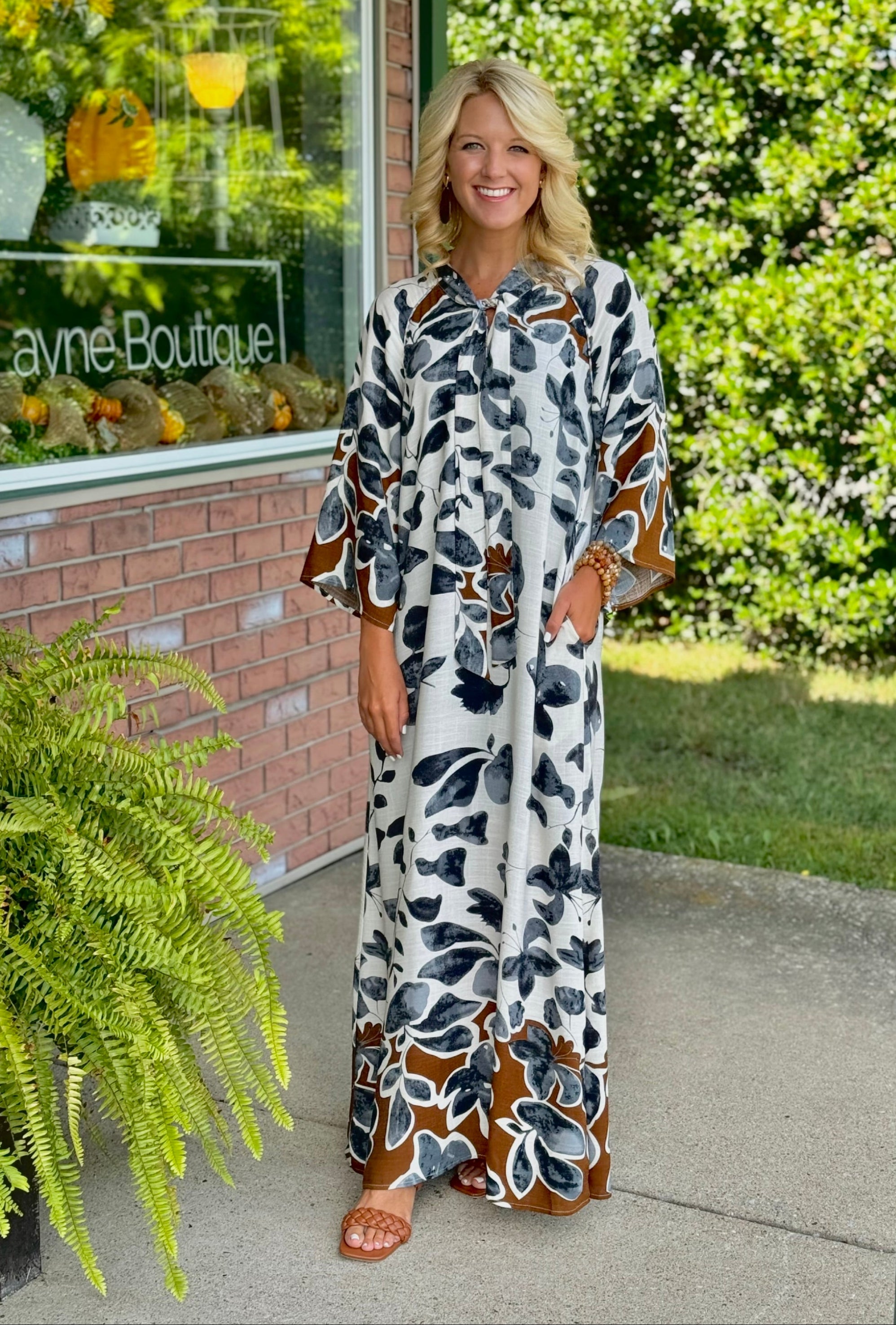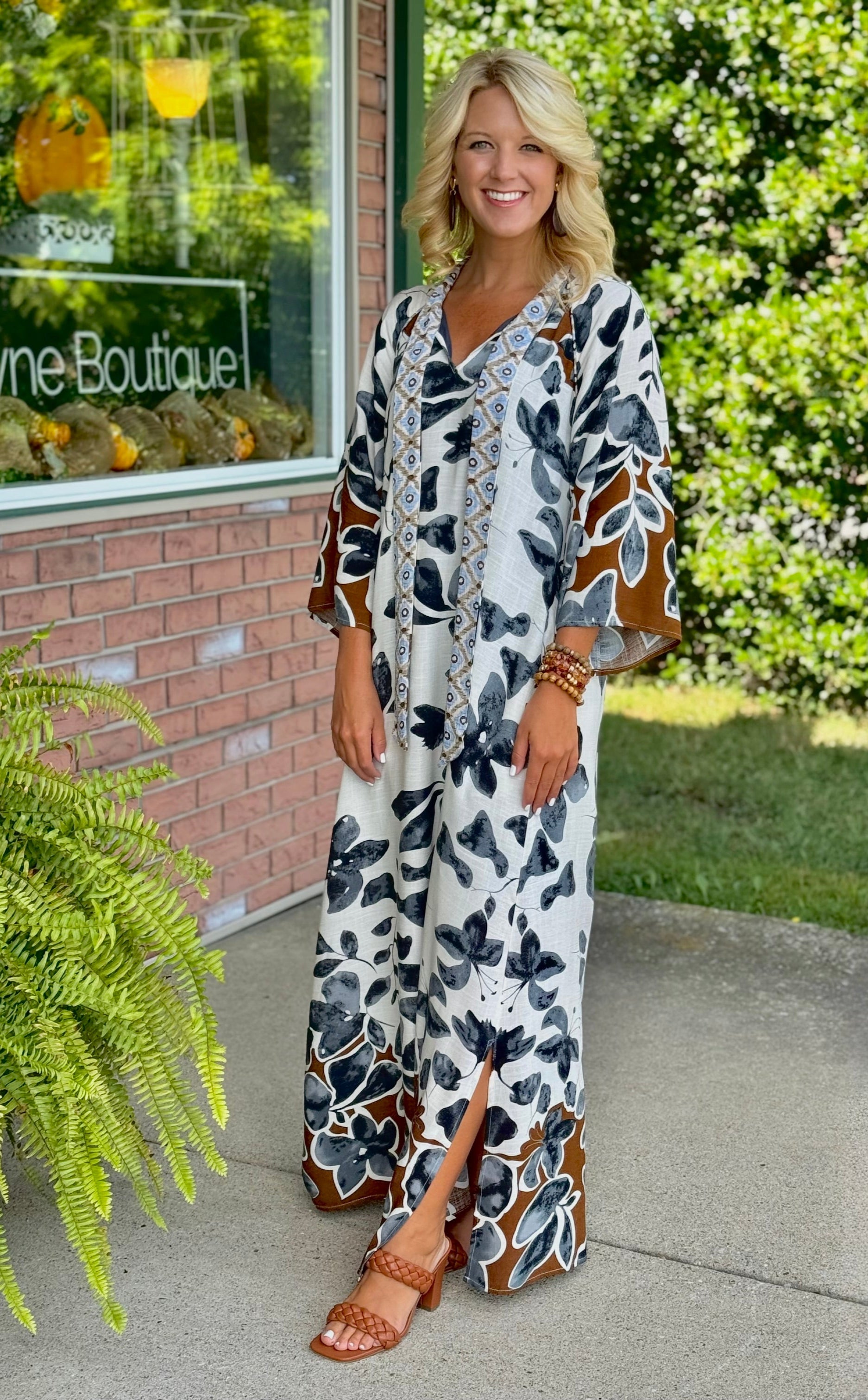 Printed Maxi Dress with Side Slit & Neckline Detail