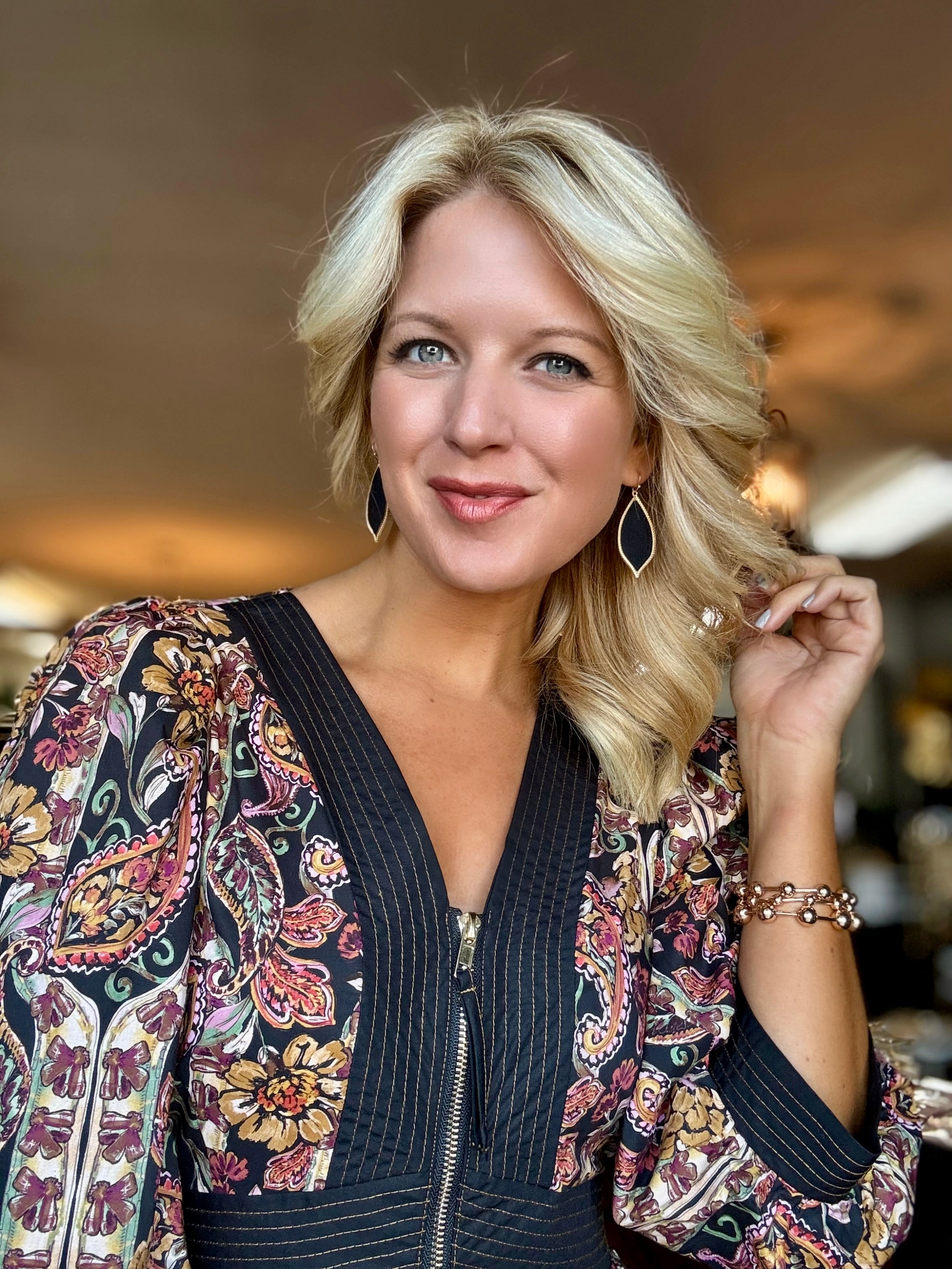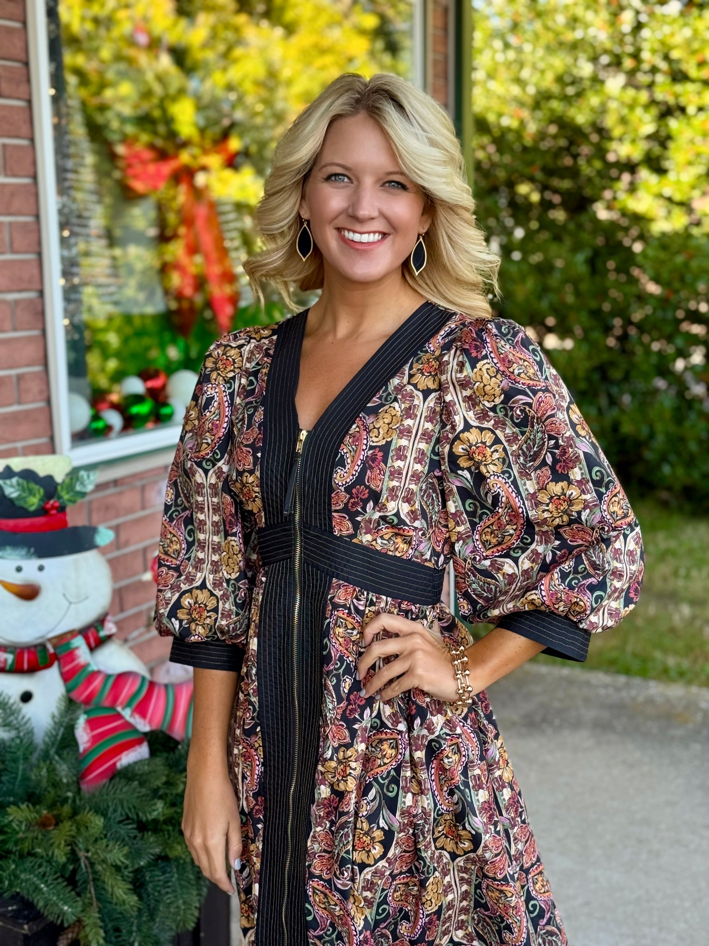 Printed Midi Dress with Zipper Front Detail
