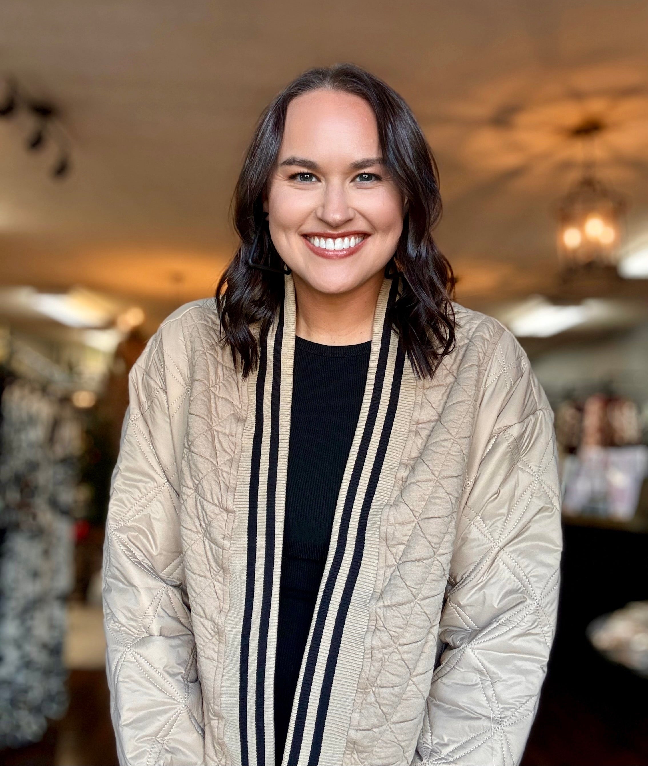 Quilted Mix Media Jacket with Stripe Detail