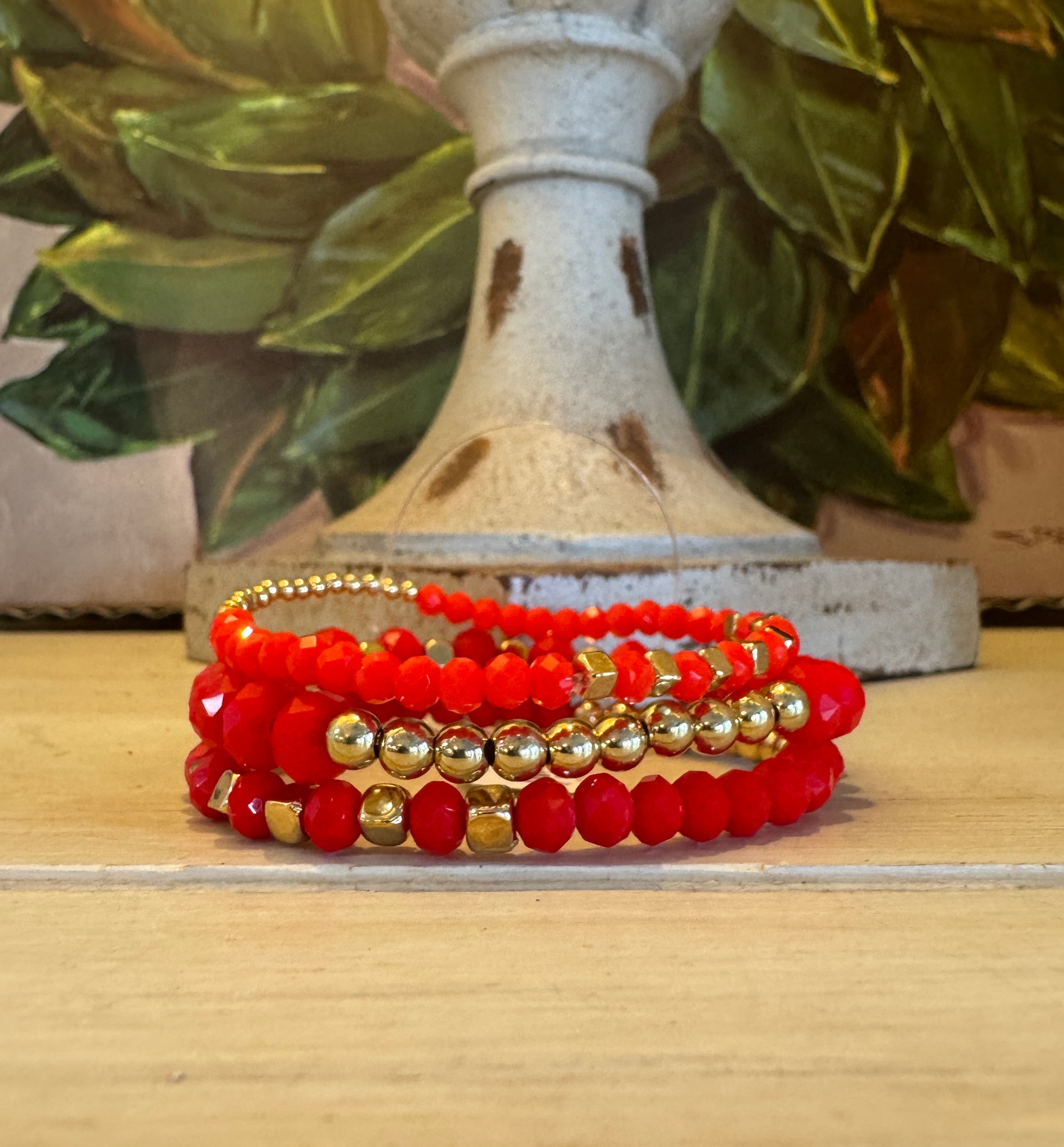 Red & Gold Beaded Bracelet Set