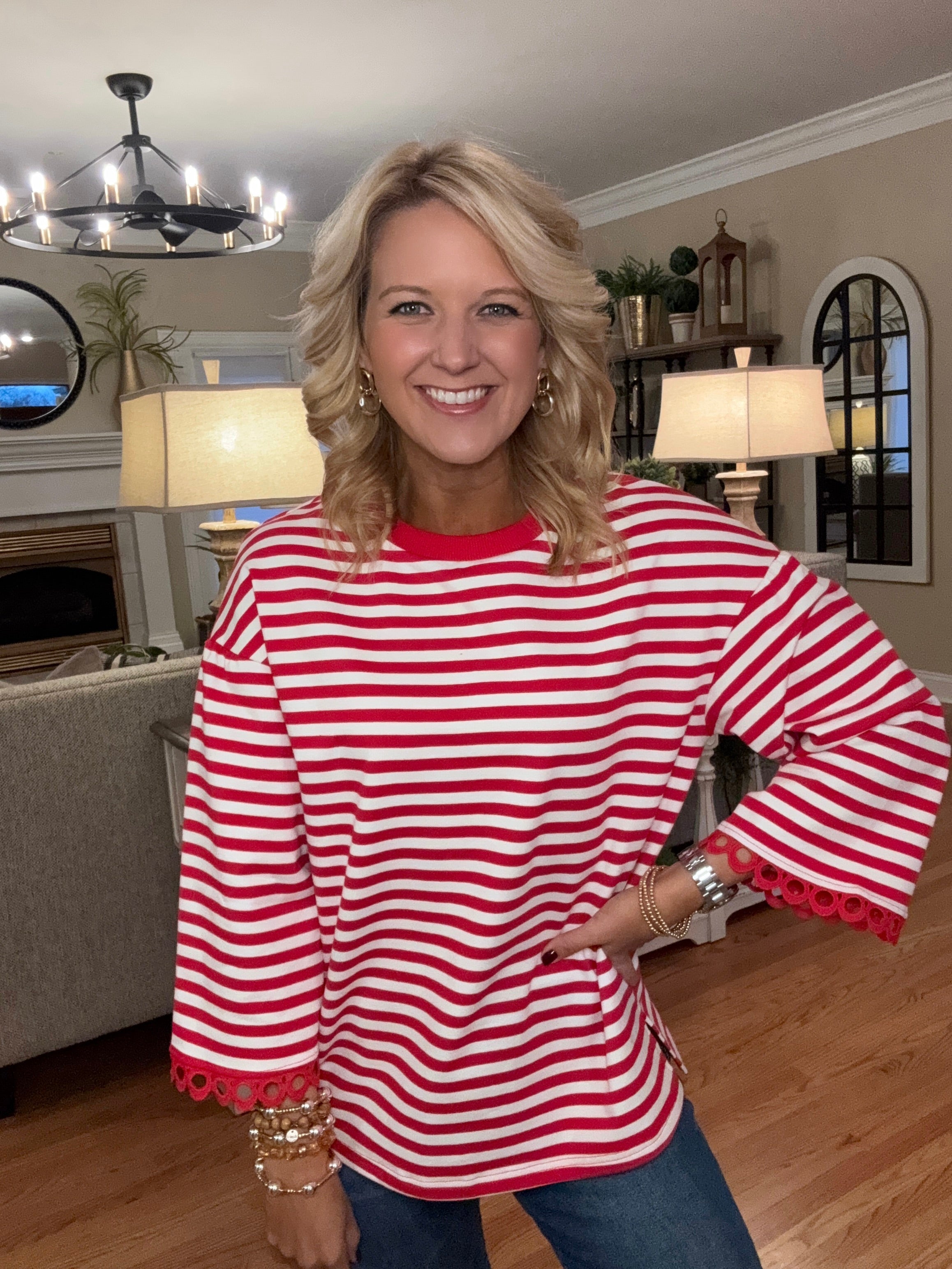 Red Stripe Top with Sleeve Detail