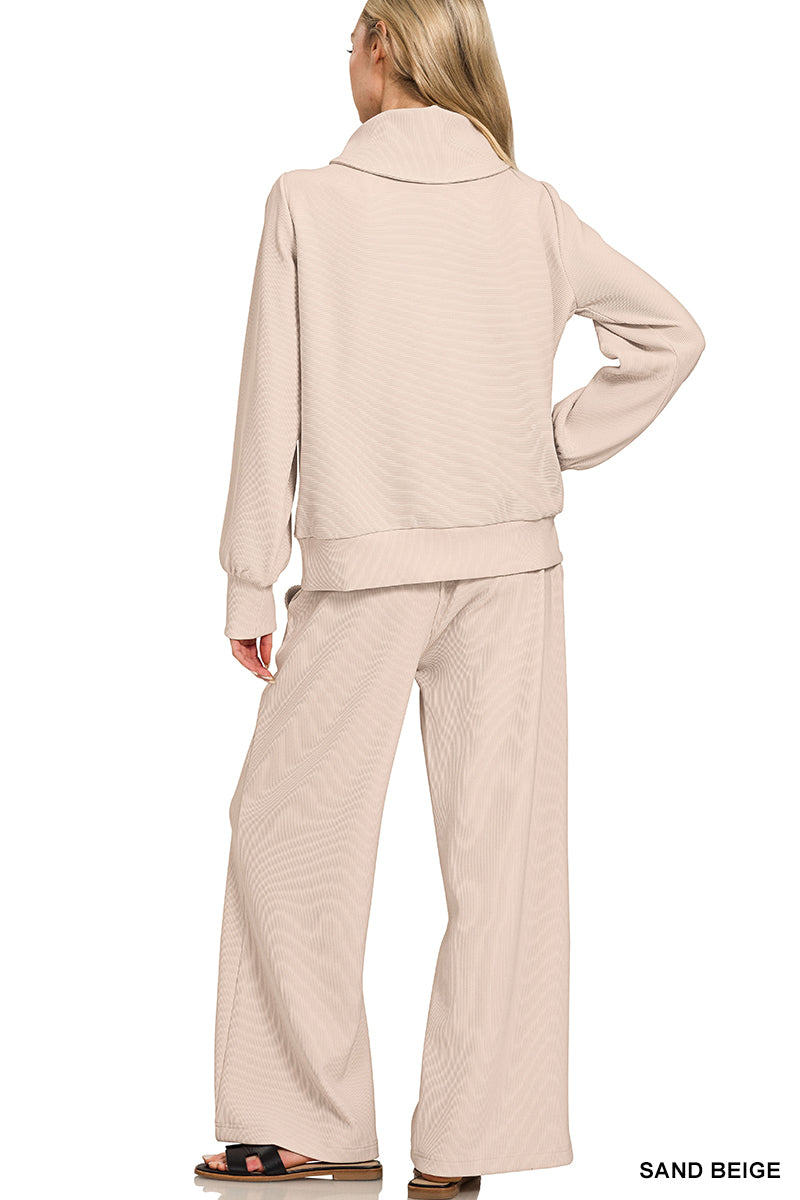 Sand Beige Ribbed Top + Wide Leg Pant SET